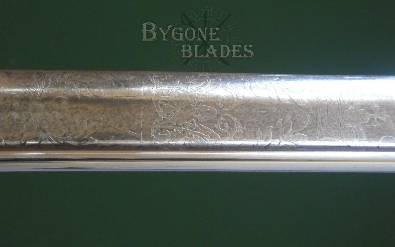 The blade is in excellent condition and is undecorated apart from King William IV’s crowned Royal cypher above laurels which is etched about a third of the way down the blade on both sides.