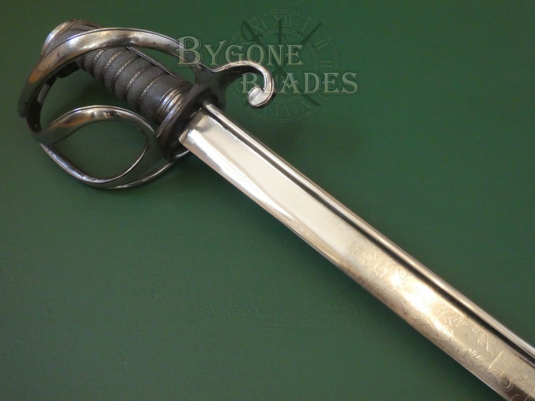 This scarce P1821 British Light Cavalry officer’s sabre bears the Royal Cypher of King William IV, dating it to between June 1830 and June 1837.