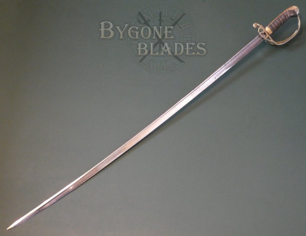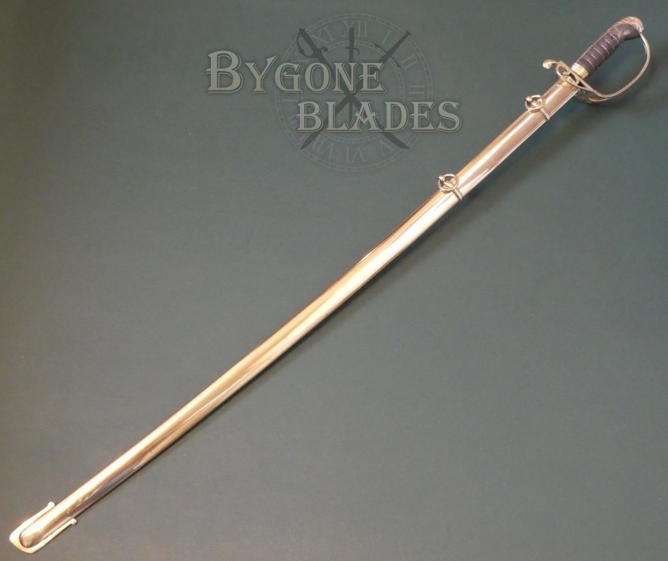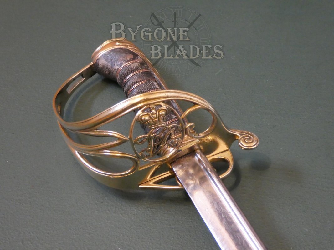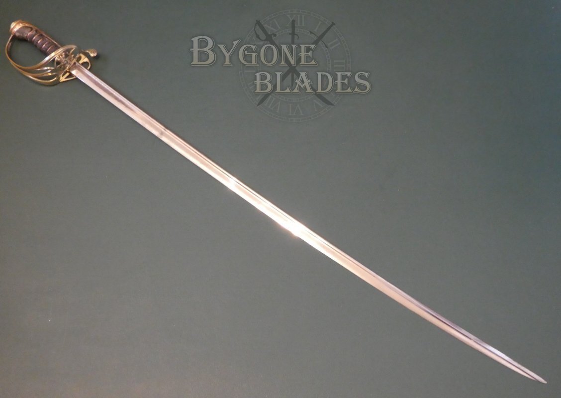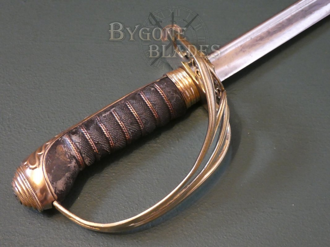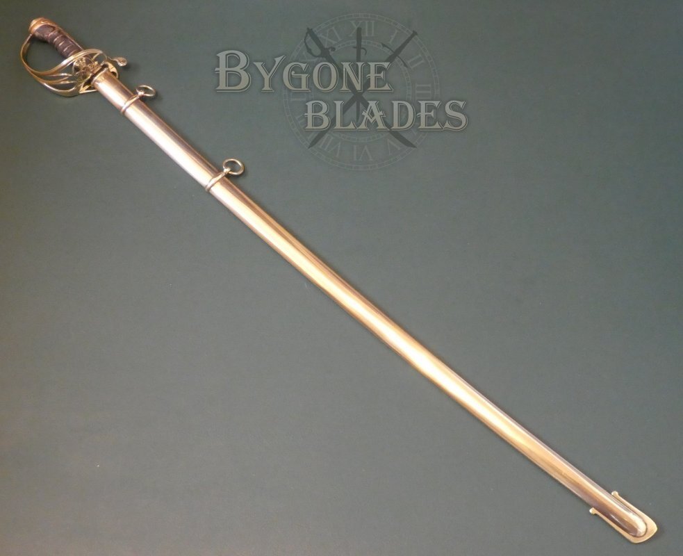 The sword is complete with its original gilt brass scabbard with twin suspension rings. The scabbard is in excellent condition.