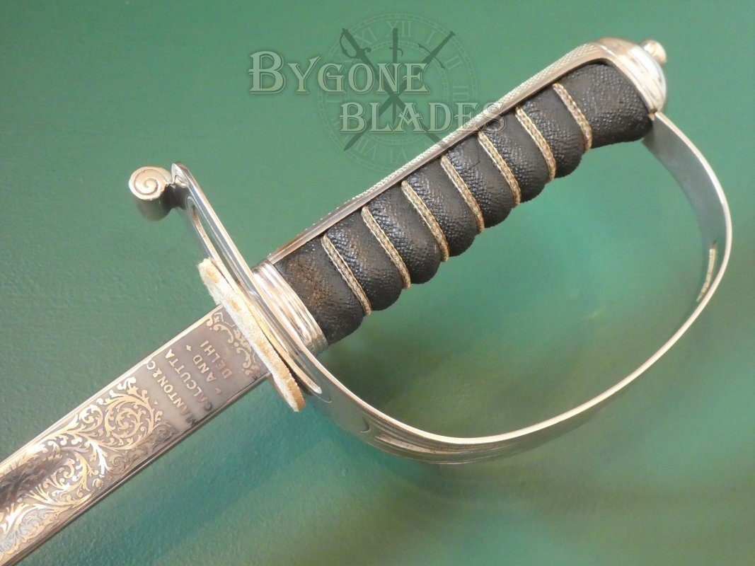 The obverse ricasso bears the retailer’s details, “Manton & Co. Calcutta and Delhi.”