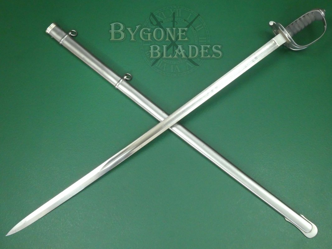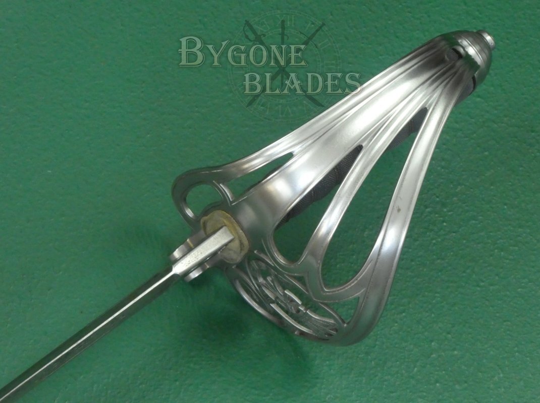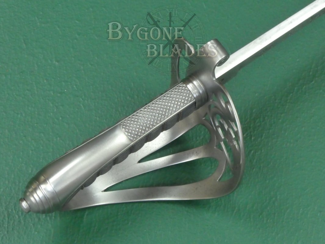 The sword is complete with its steel scabbard with twin suspension rings. The scabbard is in very good condition. The sword sheathes and draws smoothly and is held firmly within the scabbard.