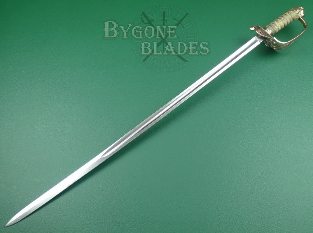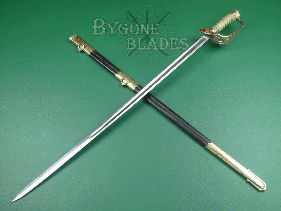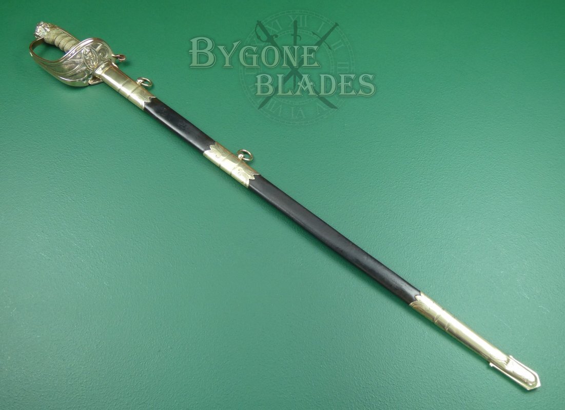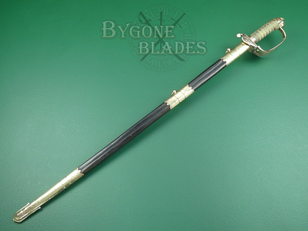 This British 1827/46 pattern Victorian Royal Navy officer’s sword was made in the last quarter of the 19th Century by George Alfred Pillin. The sword is named to J. M. Gordons, RN.