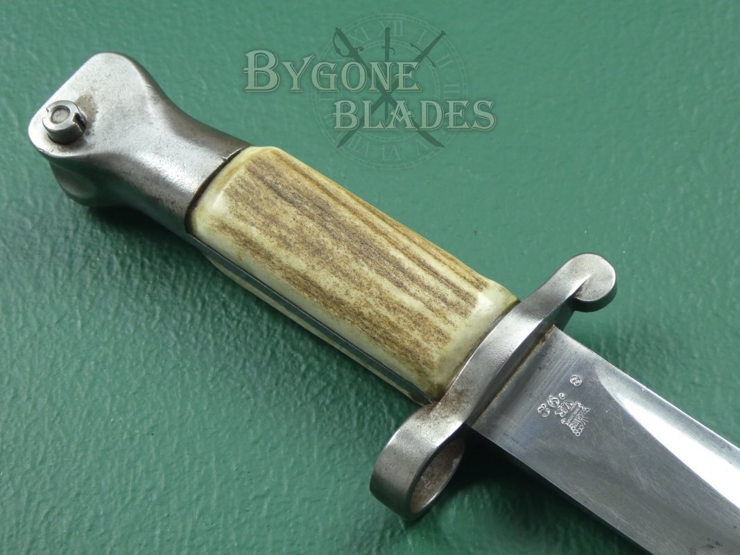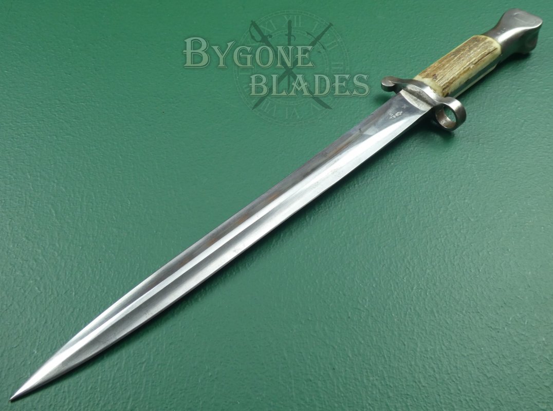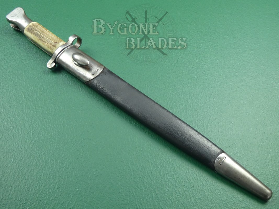 This is an excellent example of the iconic British Boer War and Boxer Rebellion bayonet that has been customised with stag antler grips.