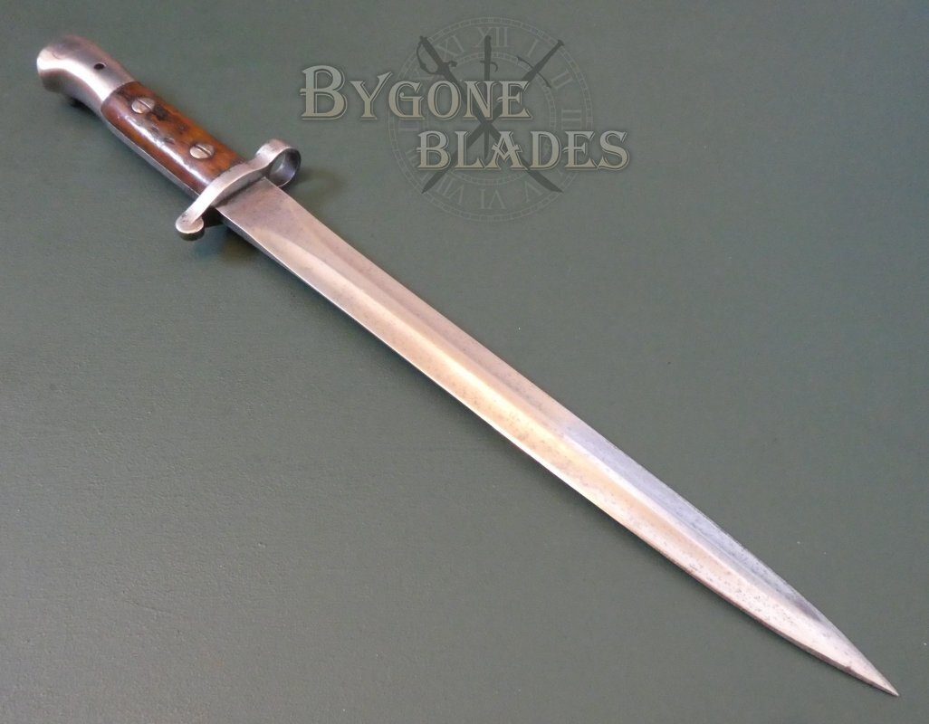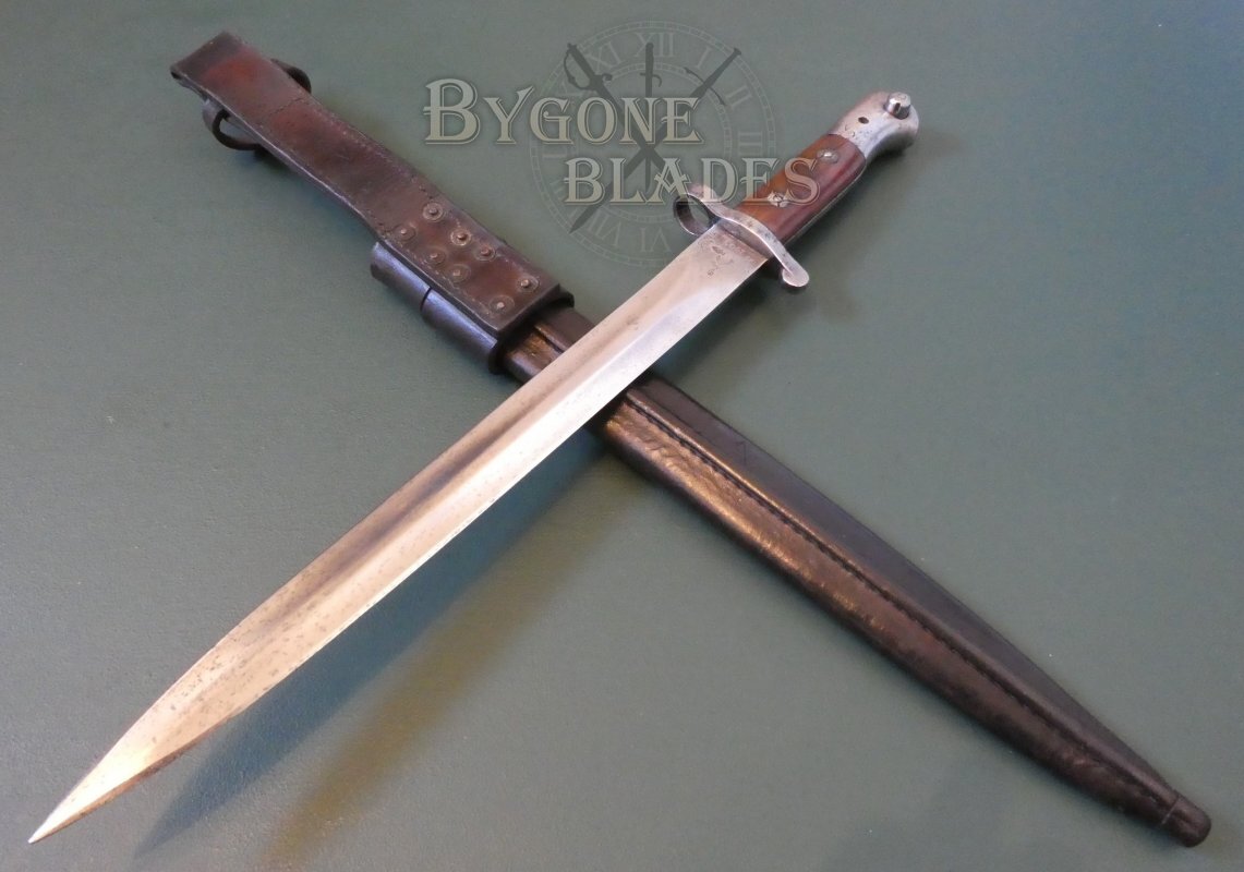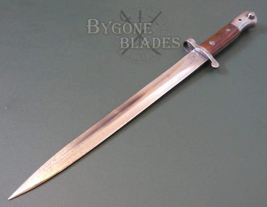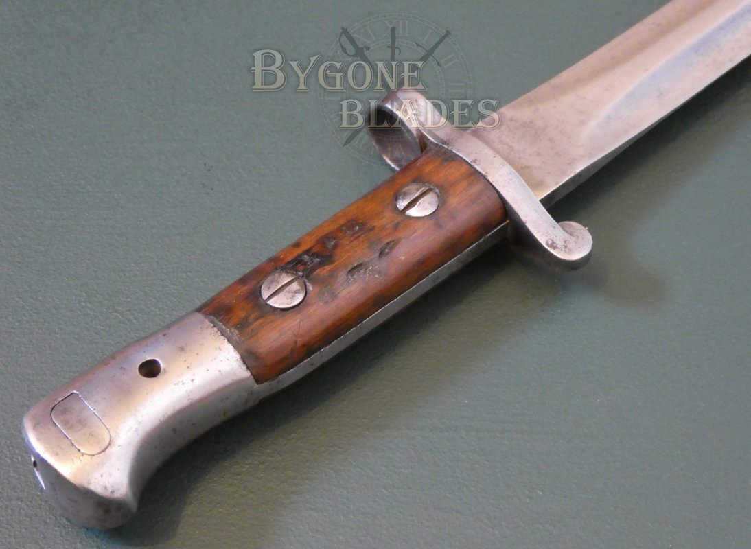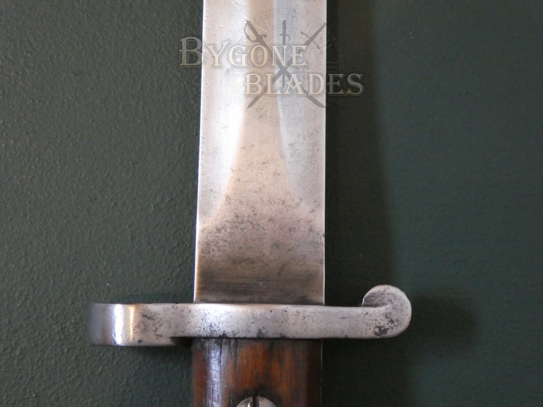 The P1903 design combined the P1888 blade and crosspiece with a new pommel design. Many 1903 pattern bayonets are actually P1888 bayonets that have been converted. This bayonet is an excellent example of a Mole made, Sanderson converted P1888.