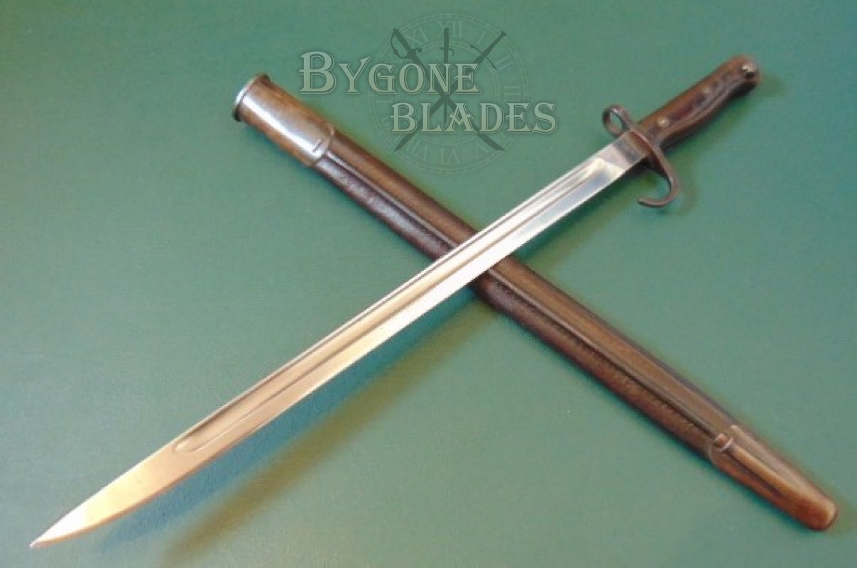 This is an excellent example of the iconic and rare British hooked quillon P1907 bayonet, unit marked to a British Line Infantry regiment that won five Victoria Crosses during World War One.