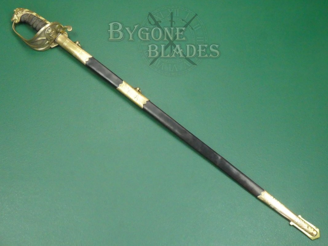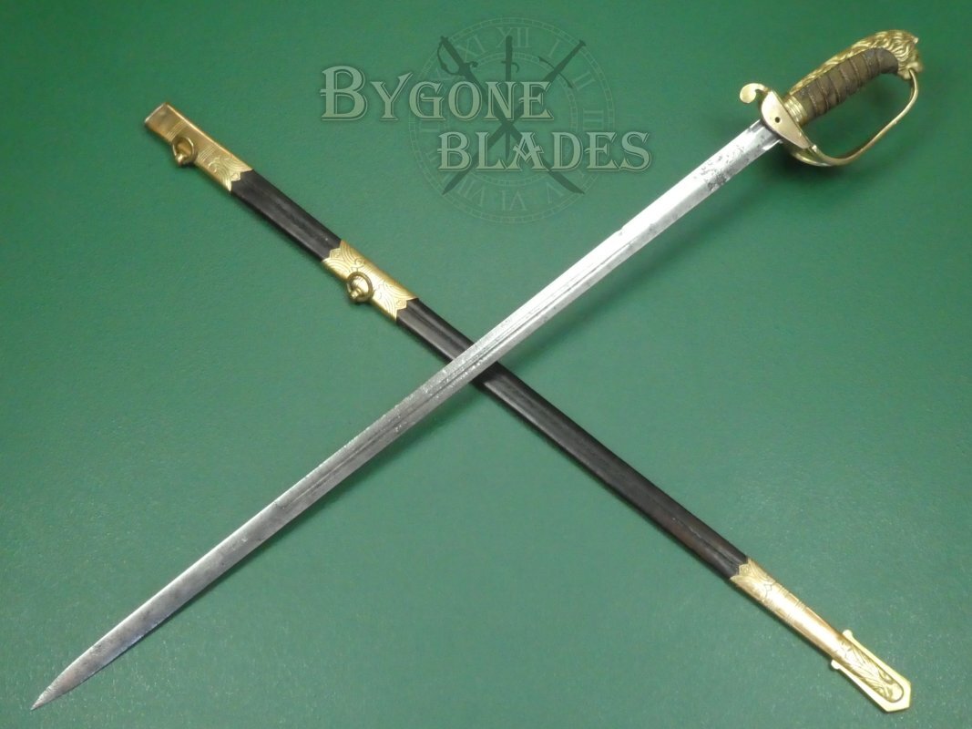 Scarce British 1827 pattern Crimean War period Claymore bladed Royal Navy officer’s sword.