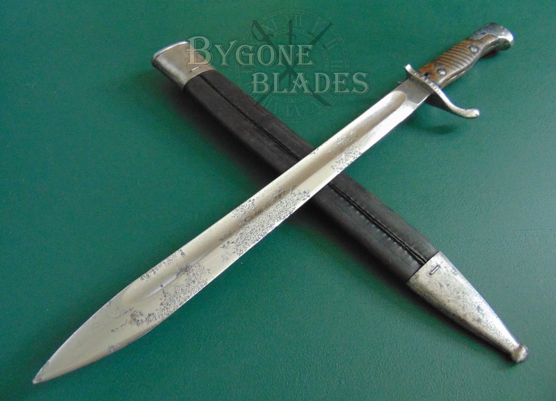 Original un-modified WW1 German S98/05 aA “Butchers’ Blade” bayonet made at the Prussian Royal Armoury in 1908.