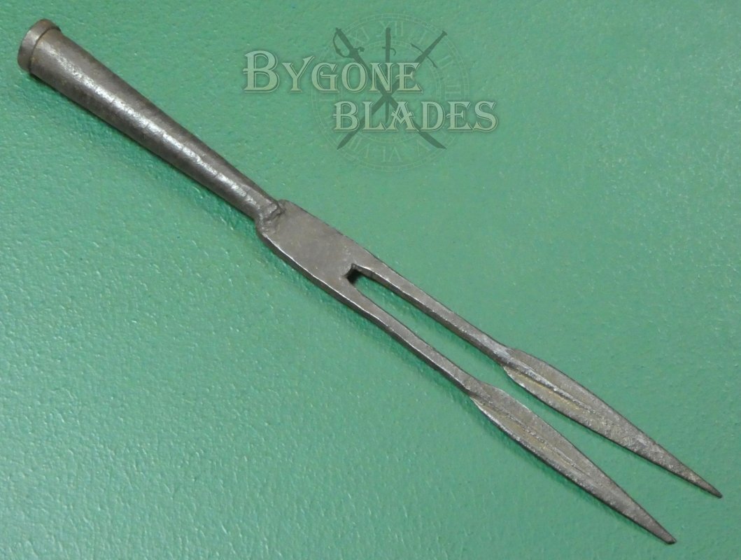 This heavy-duty double-pronged fishing spear dates to the 19th Century and is of a type used in Central and Eastern Africa. It is thought that this particular example comes from Ethiopia.