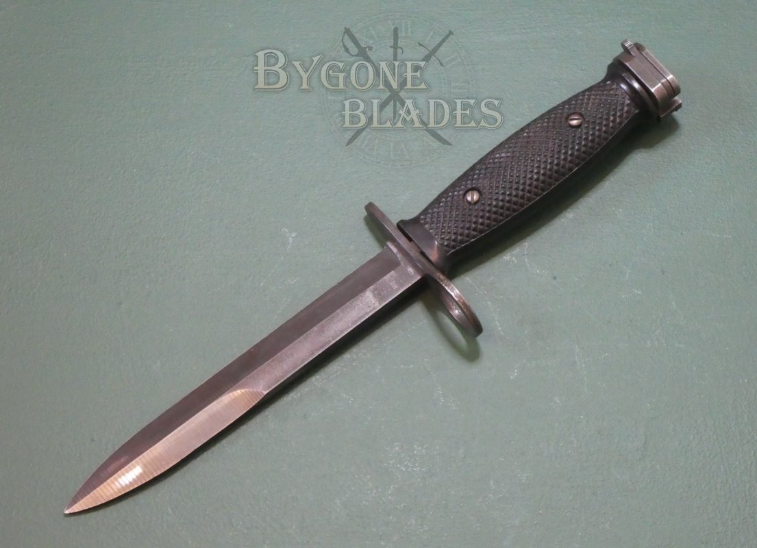 The M7 bayonet was introduced in 1964 and was designed for use with the American M16 assault rifle and M4 carbine. It is the famous Vietnam War issue bayonet. The Bauer Ordnance Company was the first contractor to produce the bayonet.