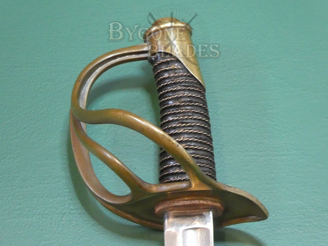 This heavy cavalry sabre, commonly referred to as Model 1840 “Wrist-breaker” was one of the military sabres used by U.S. mounted forces before and during the American Civil War (1861-65). These sabres were a copy of the earlier French Mdle 1822 Cavalry Sabre and the development of the US M1840 closely followed that of the French M1822. French Mdle 1822 sabres were however only produced in France.