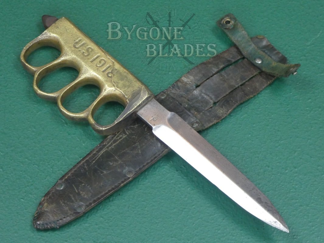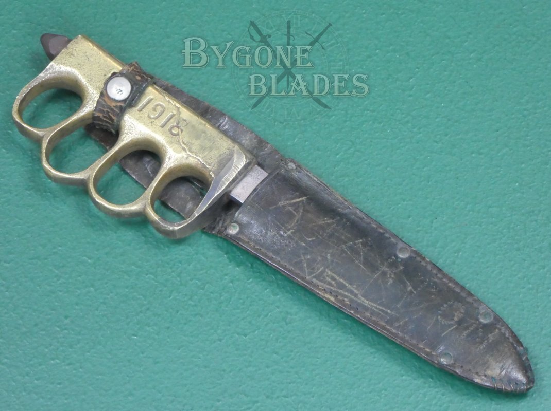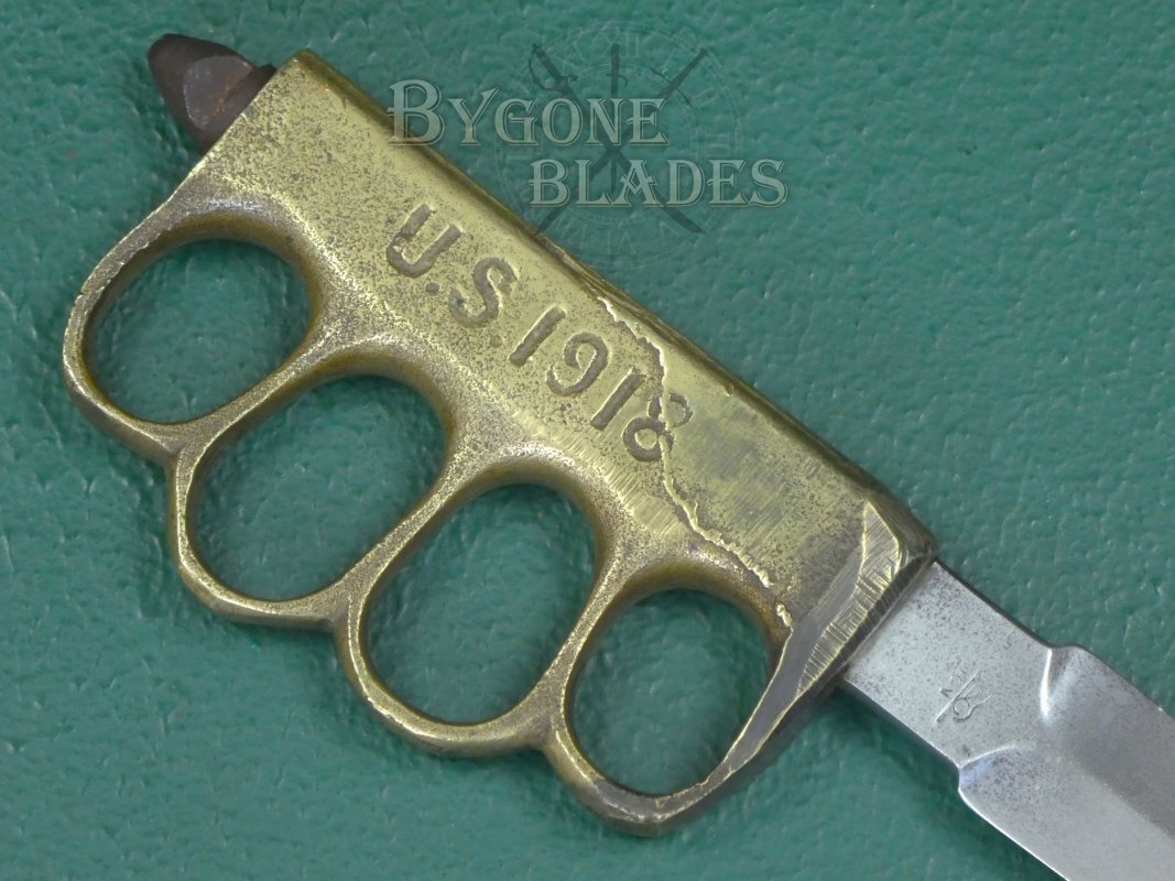 In 1918, realising that the US-based factories were unlikely to finish production in time to supply the frontline troops with the newly developed knuckle knife, the American Government contracted the French maker, Au Lion, to produce and supply these knives to the American troops in the European Theatre. Au Lion made knives went from the factory to the front-line. Only the French made examples saw WW1 combat service.
