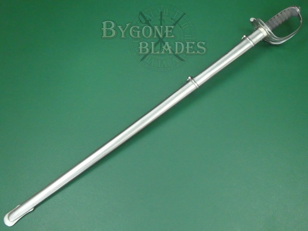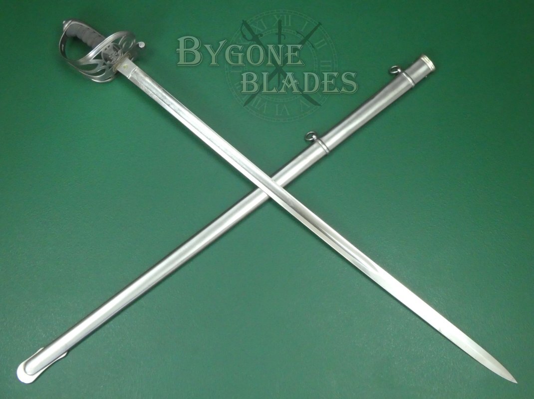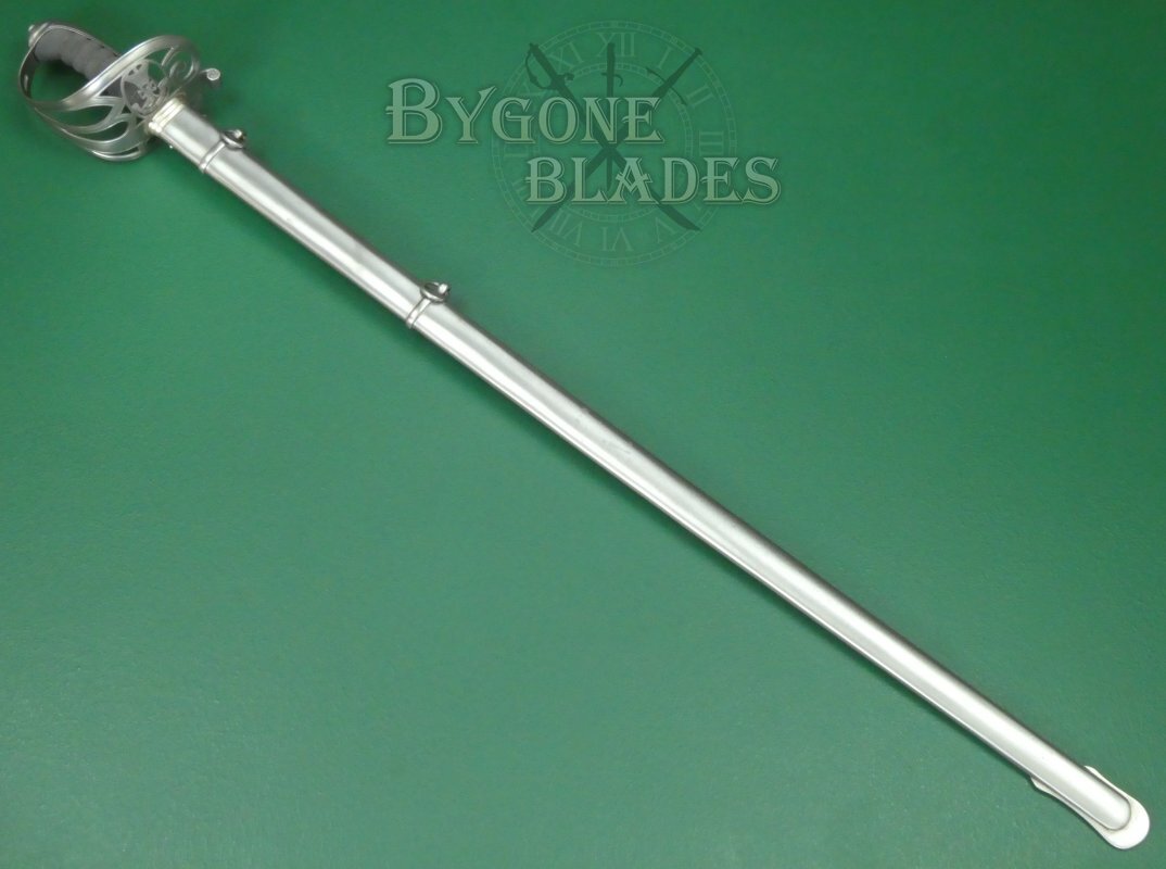 The sword is complete with its steel scabbard with twin suspension rings. The scabbard is in very good condition. The sword sheathes and draws smoothly and is held firmly within the scabbard.