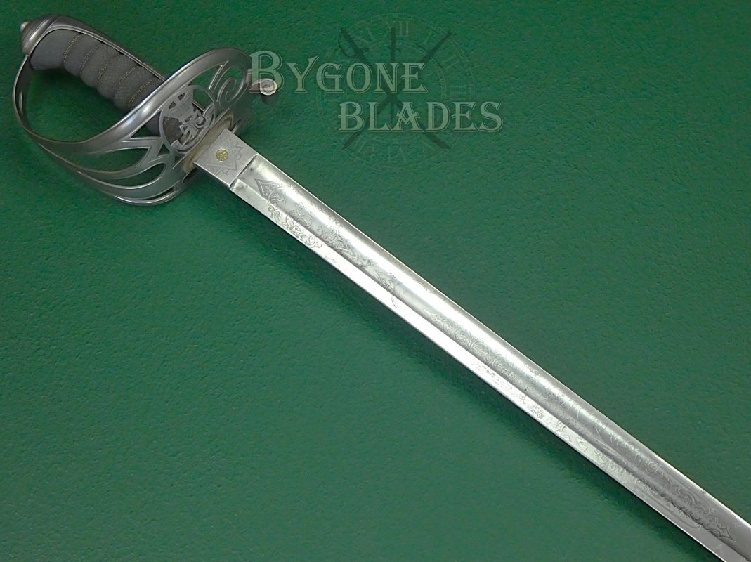 This is a great example of a Victorian Rifle officer’s sword, regimentally badged to the Queens Edinburgh Rifles and complete with owner’s initials enabling further research.