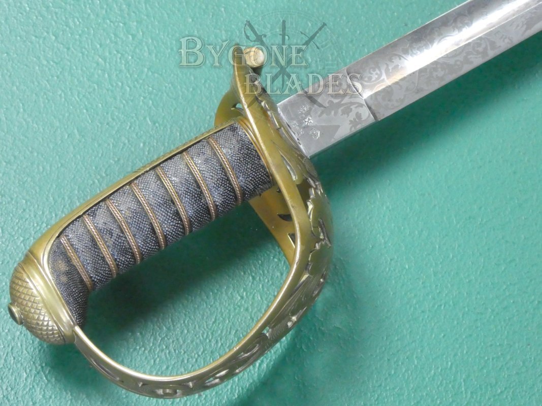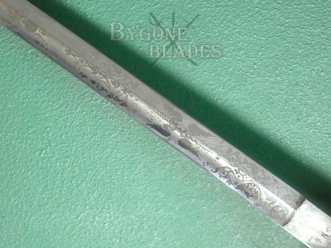 This is a great and rare example of a Royal Engineer Submarine Mining Unit staff sergeants’ sword.