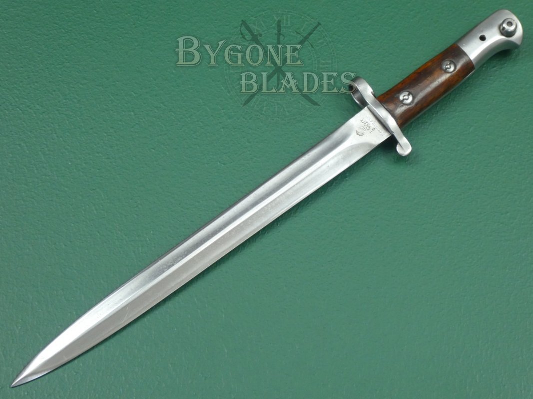 The P1903 had a short service life as the blade wasn’t thought to be long enough, having less reach than most European bayonets when combined with the shorter Mk1 rifle. The P1903 was produced for British use from 1903–1907, at which time the P1907 was adopted.