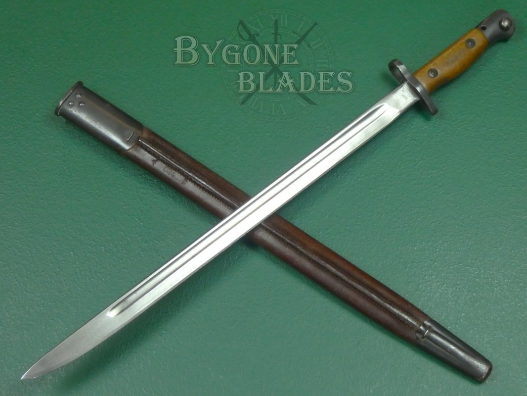 This British WW1 1907 pattern bayonet was made in 1918 by Sanderson & Newbould of Sheffield, England.