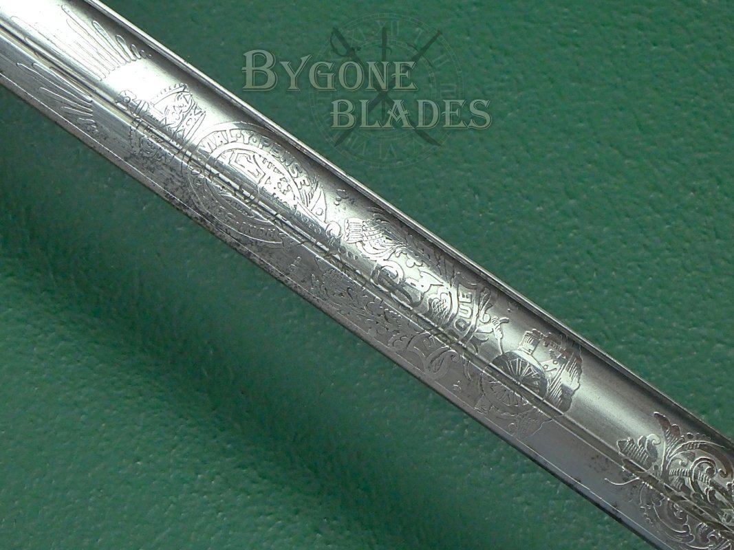This British 1821/45 pattern Royal Artillery Officer’s Sword dates to between 1901 and 1907 and was made by Septimus John Pillin.