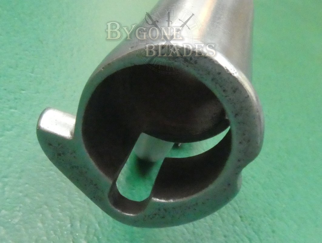 The Lovell’s spring catch was developed early in the 1840’s as a replacement for the Hanoverian catch and was approved by the Board of Ordnance on the 23rd October 1844. Following its adoption, the Lovell catch was retro-fitted to several earlier patterns of socket bayonet and was also used with new pattern muskets. This particular bayonet is for the 1851 pattern musket. It is essentially the same as the 1842 pattern, but with a slightly smaller diameter socket.