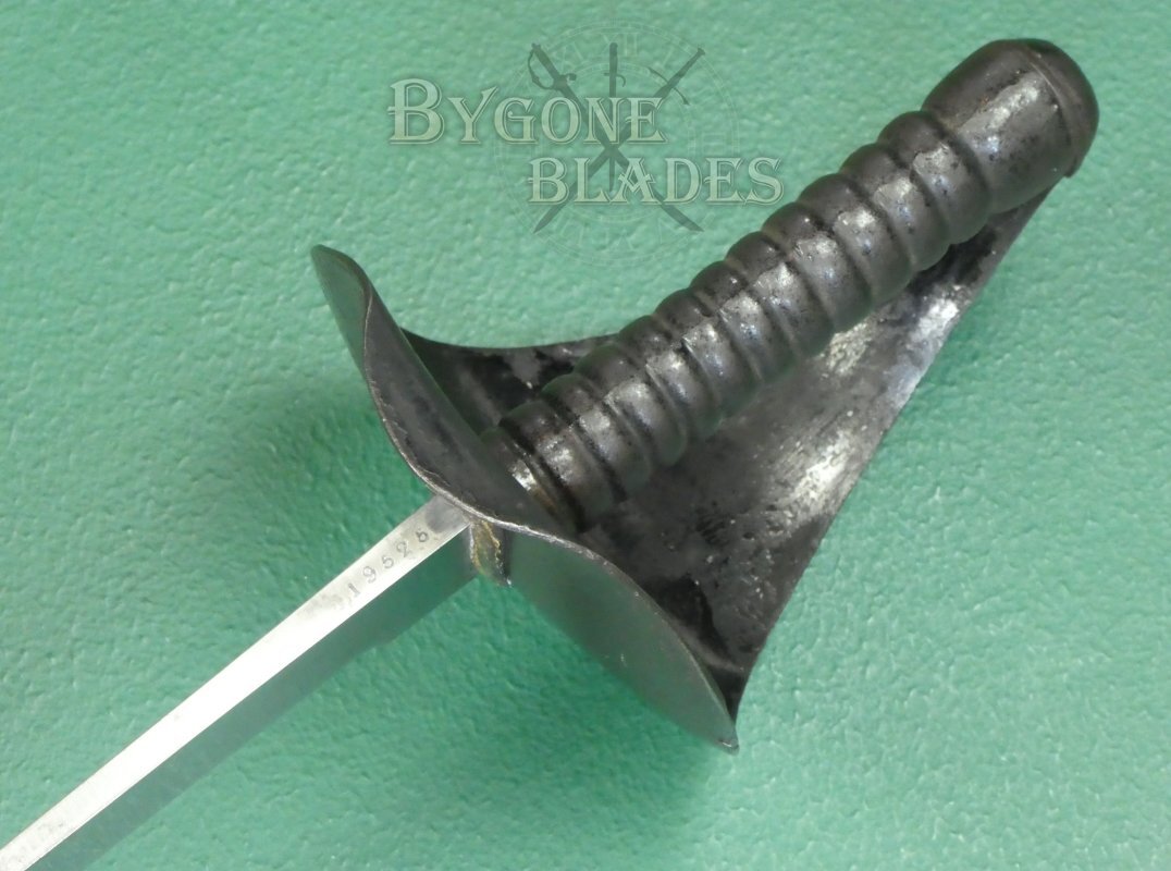 The steel bowl guard and cast-iron grip are in good condition and the blade is firm in the hilt.