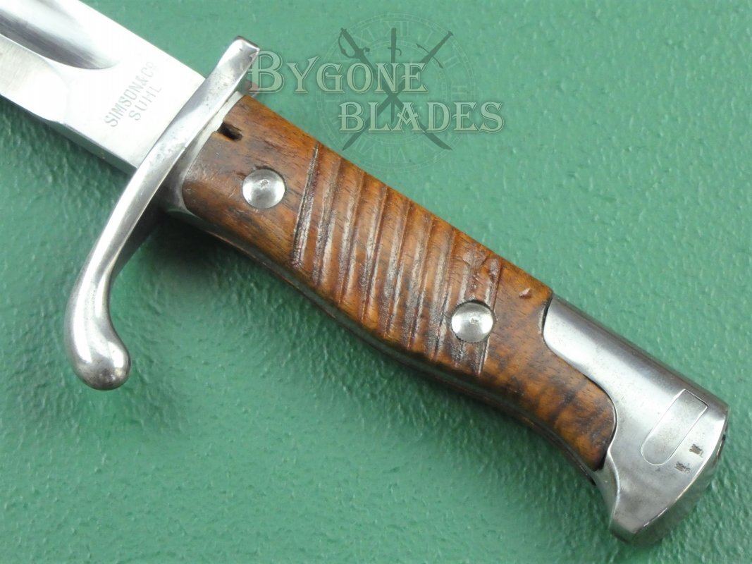Original un-modified WW1 German S98/05 aA “Butchers’ Blade” bayonet made in 1915 by Simson & Co of Suhl.