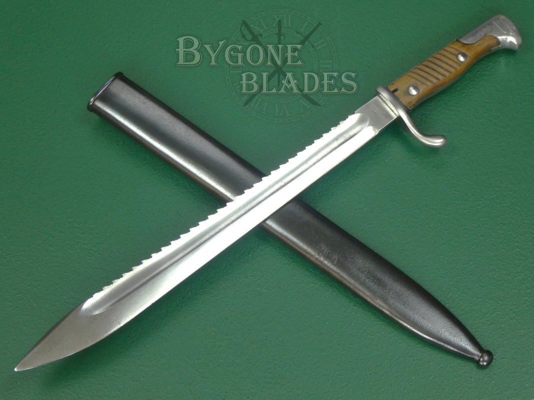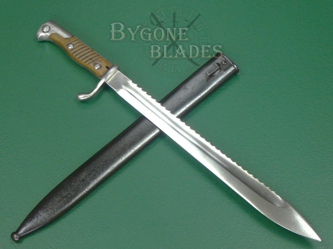 Rare German WW1 S98/05 m. S. Saw-back “Butcher’s Blade” Bayonet. The saw-back version was known as the S98/05 m. S. (mit Säge - with saw). Only 6% of S98/05 bayonets were made with the saw-back. This S98/05 m. S was made in 1916.