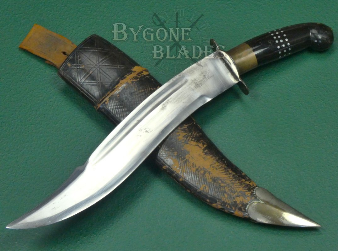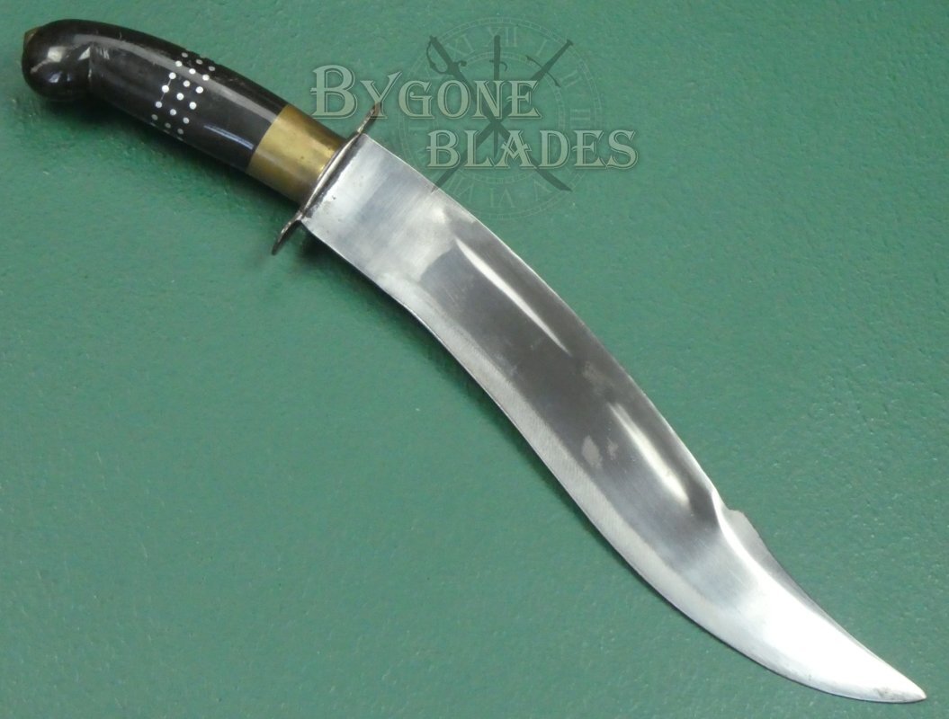 This vintage Indian made yataghan knife is of surprisingly good quality for something that was probably made for the 1960-70’s tourist market. The style is somewhere between a traditional kukri and a clip-point Bowie knife. Custom knives of this style sell for many hundreds of pounds.
