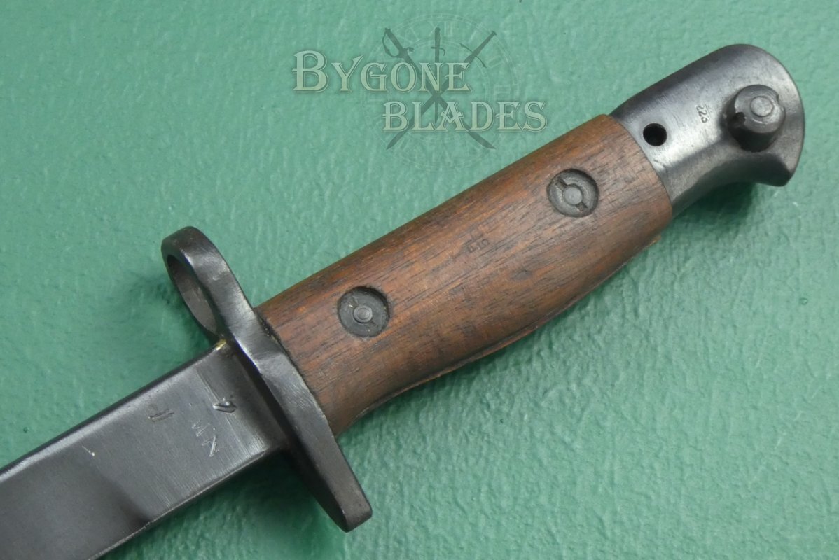 This Indian No.1 Mk II* pattern bayonet was made after WW2 at the North Western Railways factory. Unlike earlier No.1 Mk II* bayonets, it was new made as opposed to being a re-worked earlier bayonet.