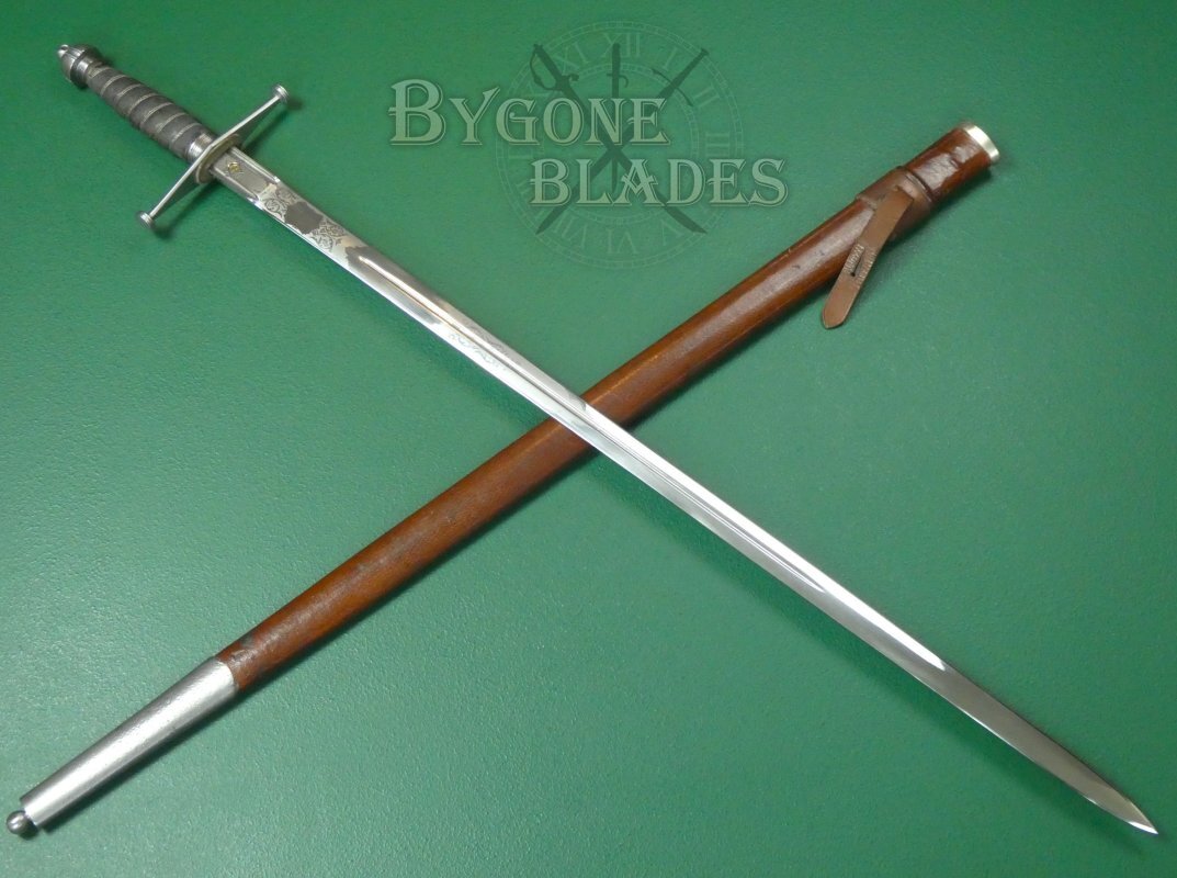 This is an excellent example of a Royal Scots officer’s broadsword made by the Wilkinson Sword Company at the onset of WW1.