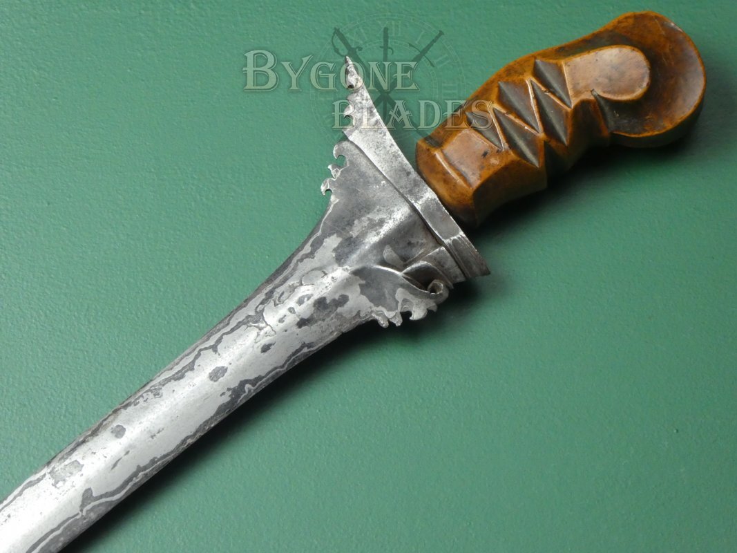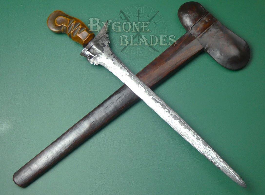 The Gahary (dark reddish-brown hardwood) hilt is in good condition with a great patina. The blade is firm in the hilt.