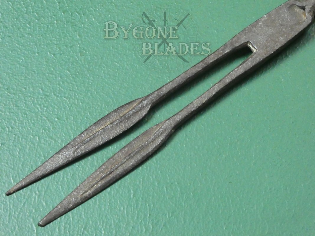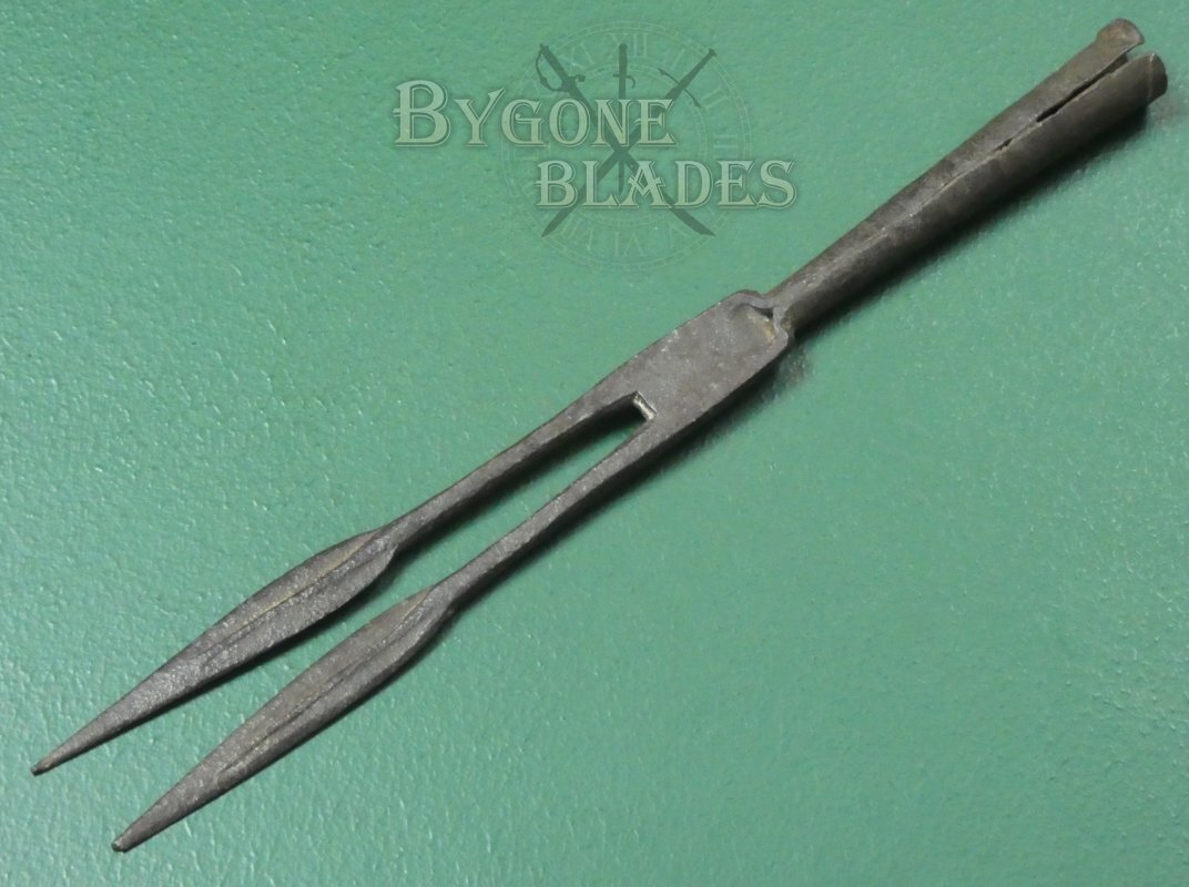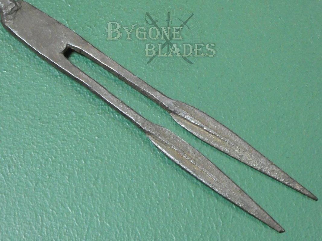 This heavy-duty double-pronged fishing spear dates to the 19th Century and is of a type used in Central and Eastern Africa. It is thought that this particular example comes from Ethiopia.
