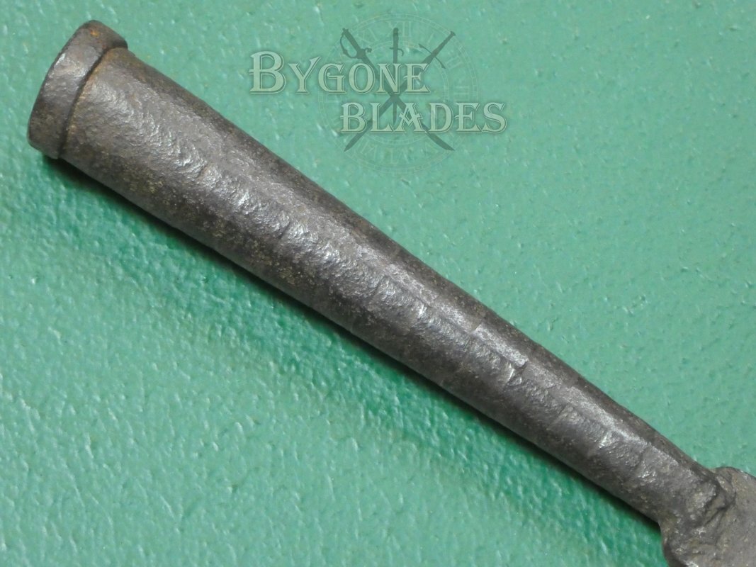 The forged iron head is 400mm in total length. The twin leaf-shaped blades have a raised medial rib and are approximately 120mm in length.