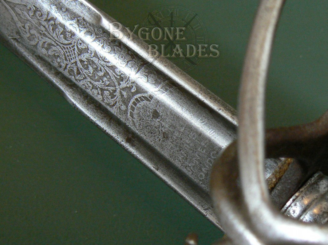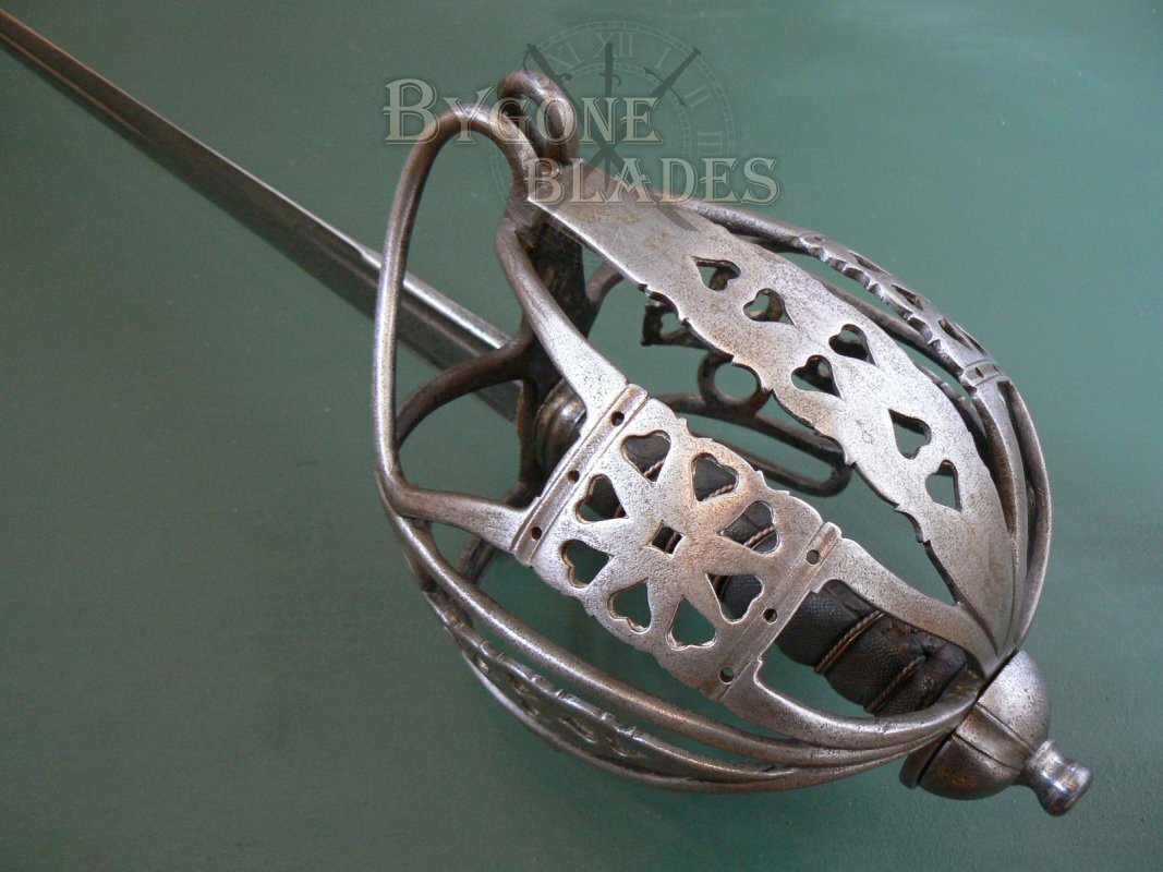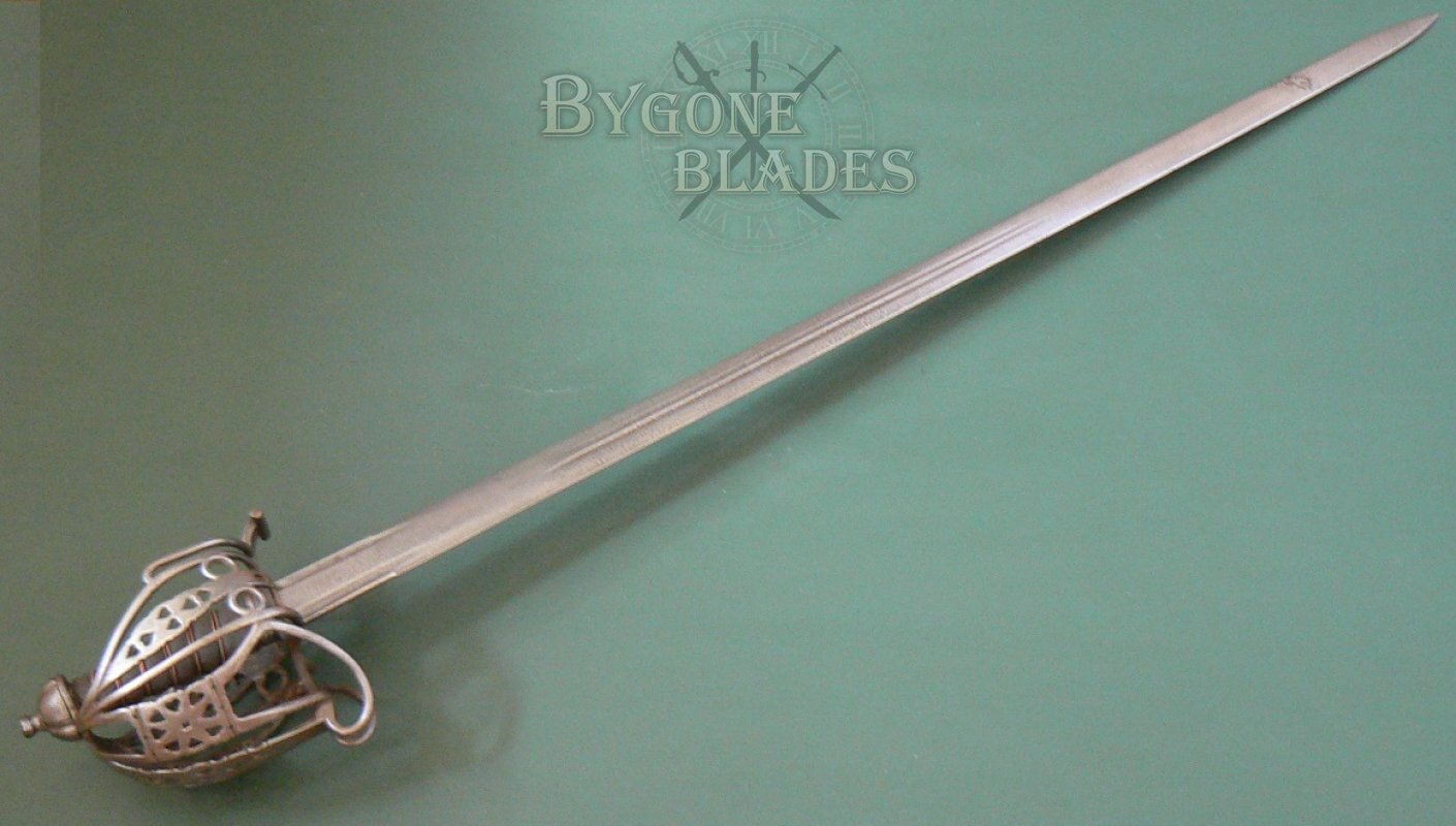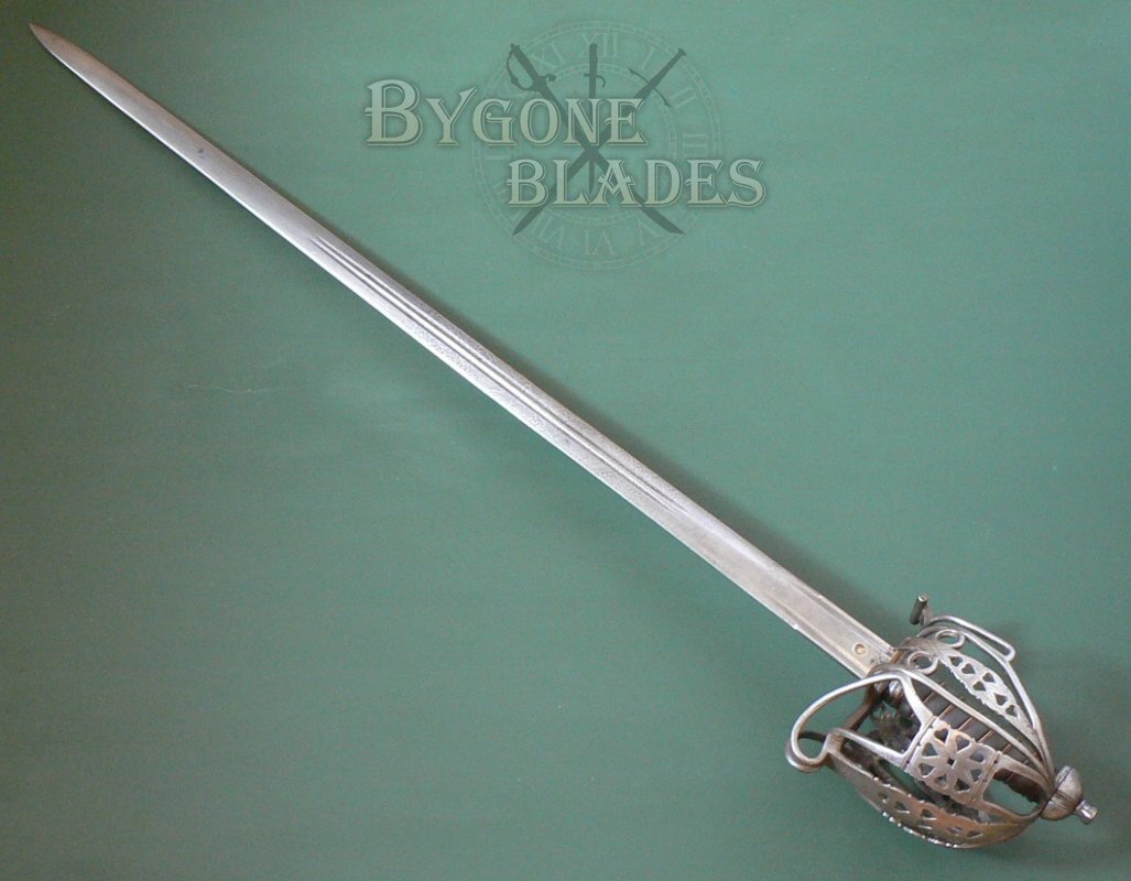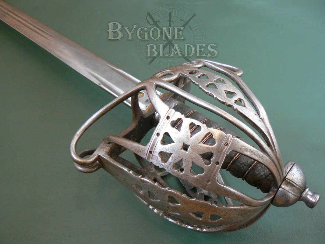 The heavy steel basket hilt is of traditional form and is in excellent condition with only minor tarnish. The ray skin grip is in good used condition and the twisted wire binding is tight.