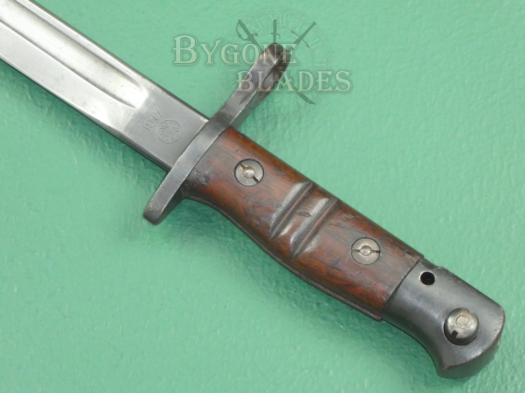 This American WW1 1917 Pattern bayonet for the Enfield .30 calibre rifle was made by Remington.