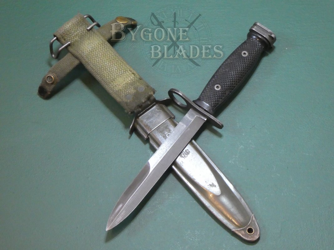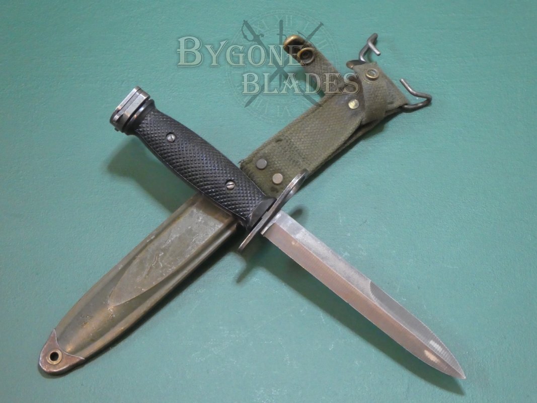 The M7 bayonet was introduced in 1964 and was designed for use with the American M16 assault rifle and M4 carbine. It is the famous Vietnam War issue bayonet. The Bauer Ordnance Company was the first contractor to produce the bayonet.