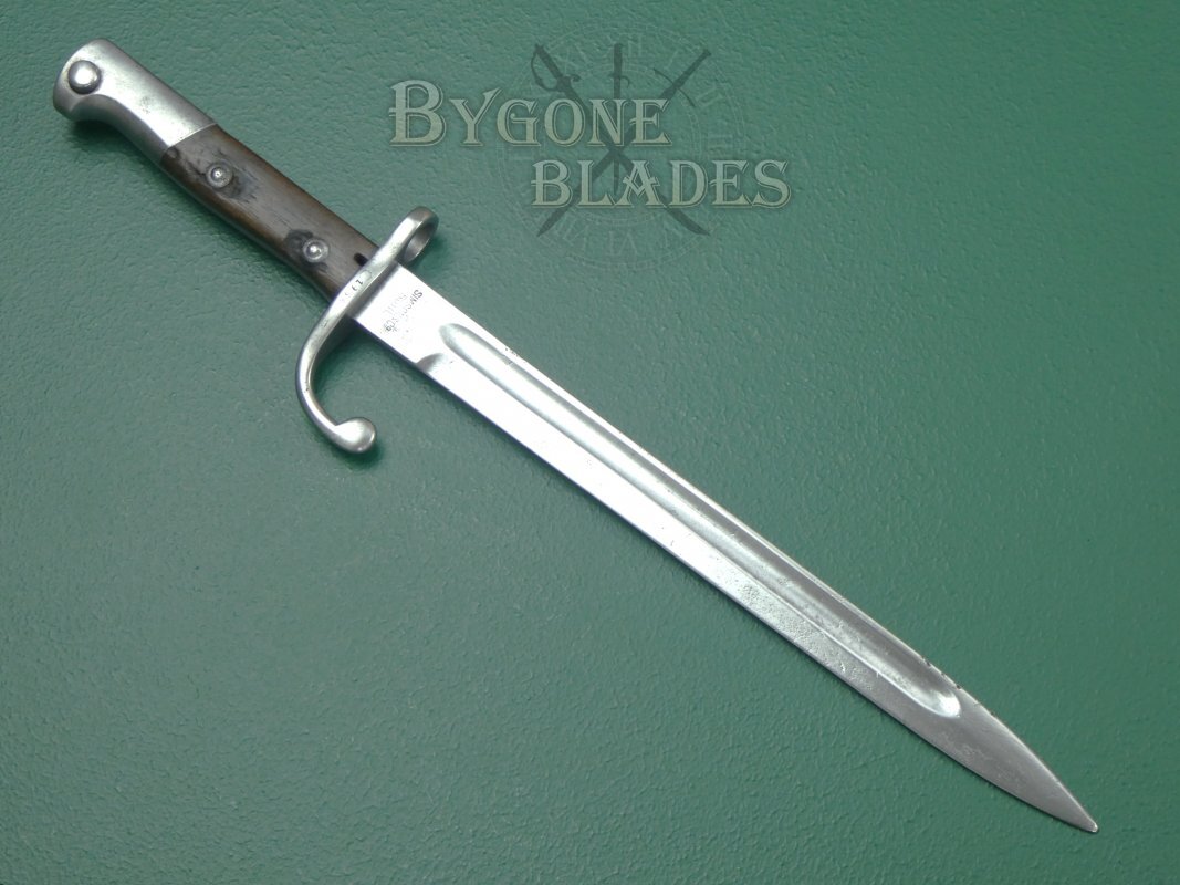 This is a good example of a German made Brazilian 1908 pattern bayonet.