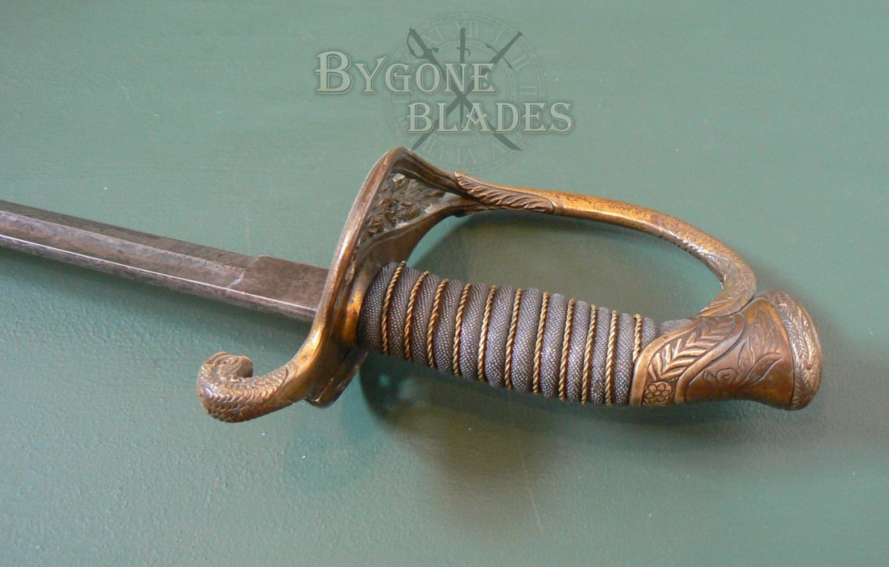 This sword is in effect the American Pattern 1852 naval sword, made famous by its use during the American Civil War.