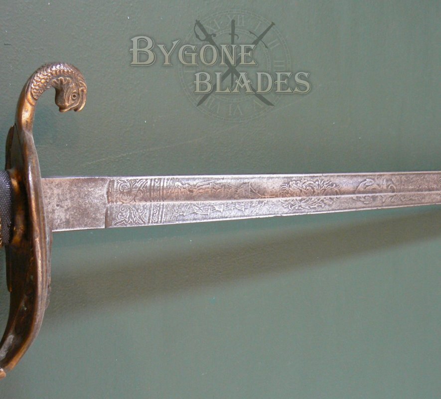 This is a scarce and beautiful sword in good original condition. The sword and scabbard show the patina of age, beneath which much of the original gilding remains. The sword is uncleaned but could be polished to bring out more of the fine detail.