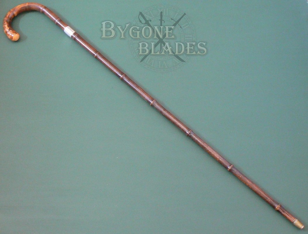 Root-ball sword cane made by Brigg of London, hallmarked and maker marked. Hallmark letter for London, 1912. Brigg were a prestigious maker and retailer of high quality walking sticks, umbrellas and sword canes.