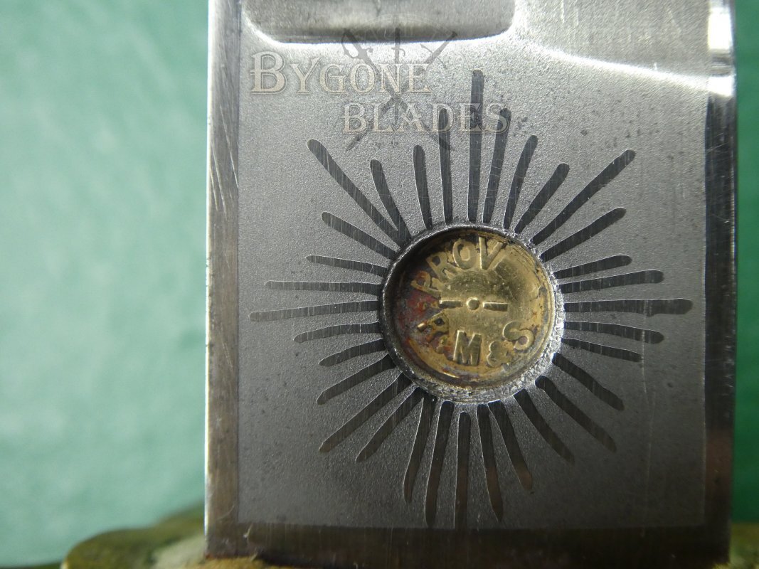 The ricasso bears a proof disk stamped with “Proved” over “R, M, & S.” The obverse ricasso bears the cutlers details, “J Friedeberg, 81 Queen St. Portsea.”