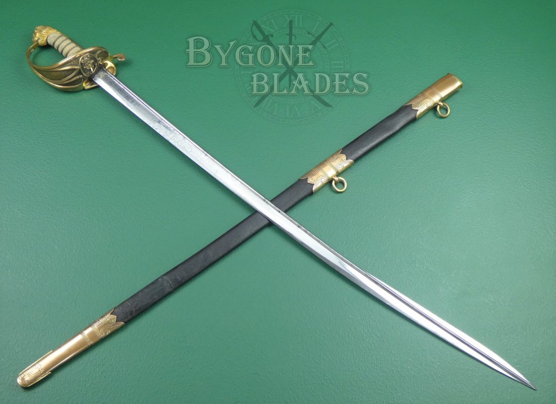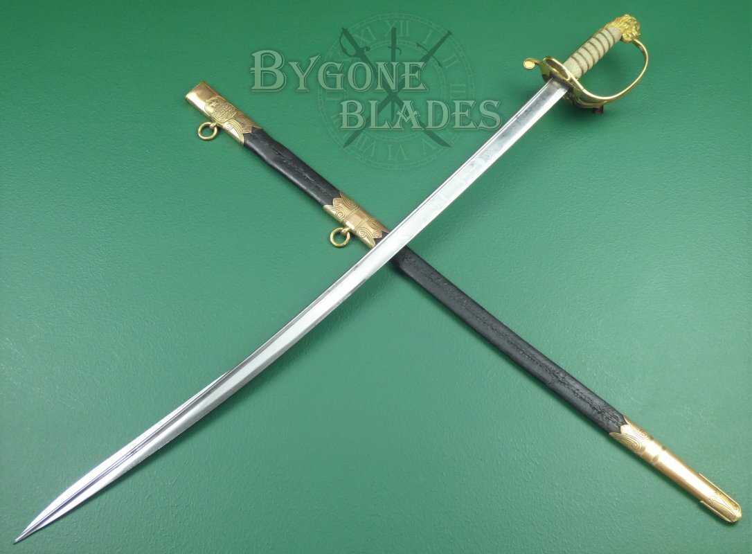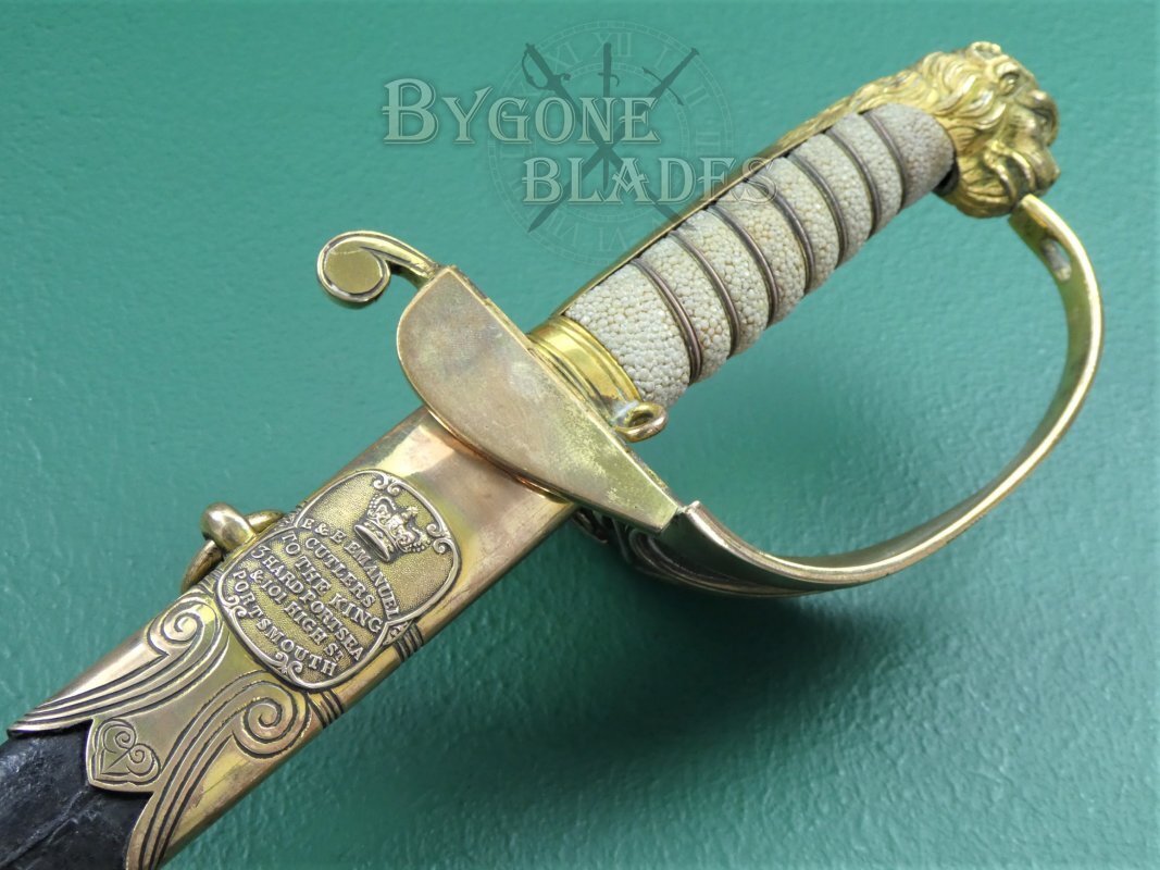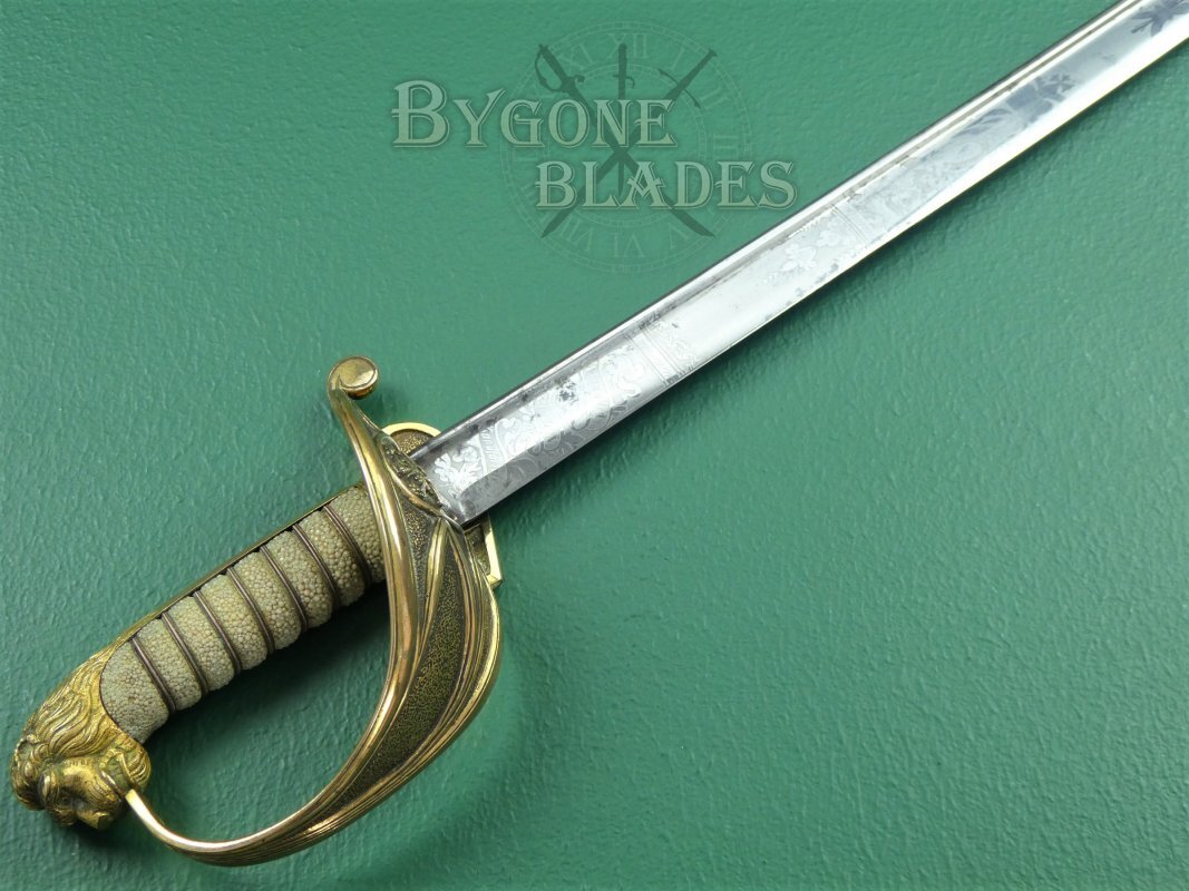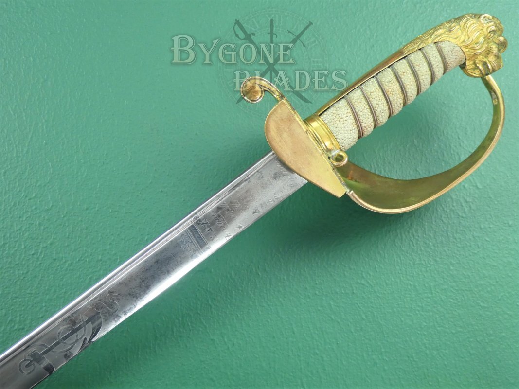 A rare early 1827 pattern William IV (1830-1837) Royal Navy officers’ sword with a quill pointed blade made famous by John Prosser of London. The sword was made between 1832 and 1837.