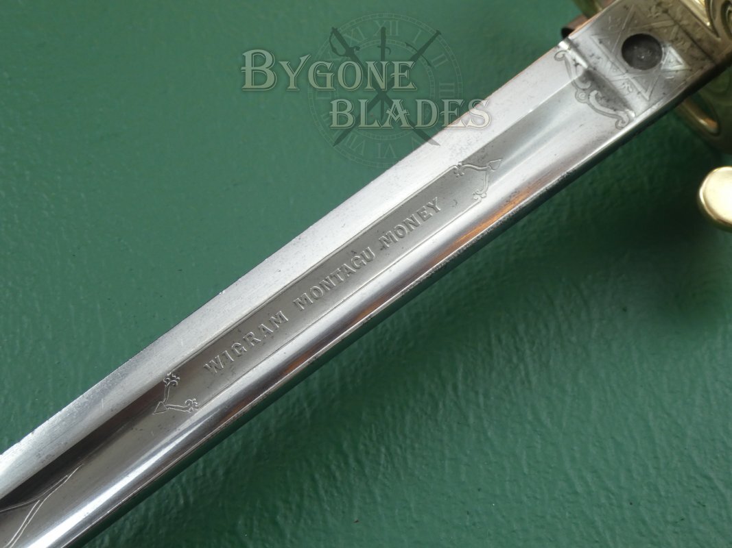 On the 17th April, 1869 he took up a Captaincy in the 61st regiment of foot, the South Gloucestershire regiment and purchased this sword. On the 1st July, 1881 Wigram Montagu Money was promoted to Major in the Gloucestershire Regiment. Major Wigram Montagu Money passed away in 1913.