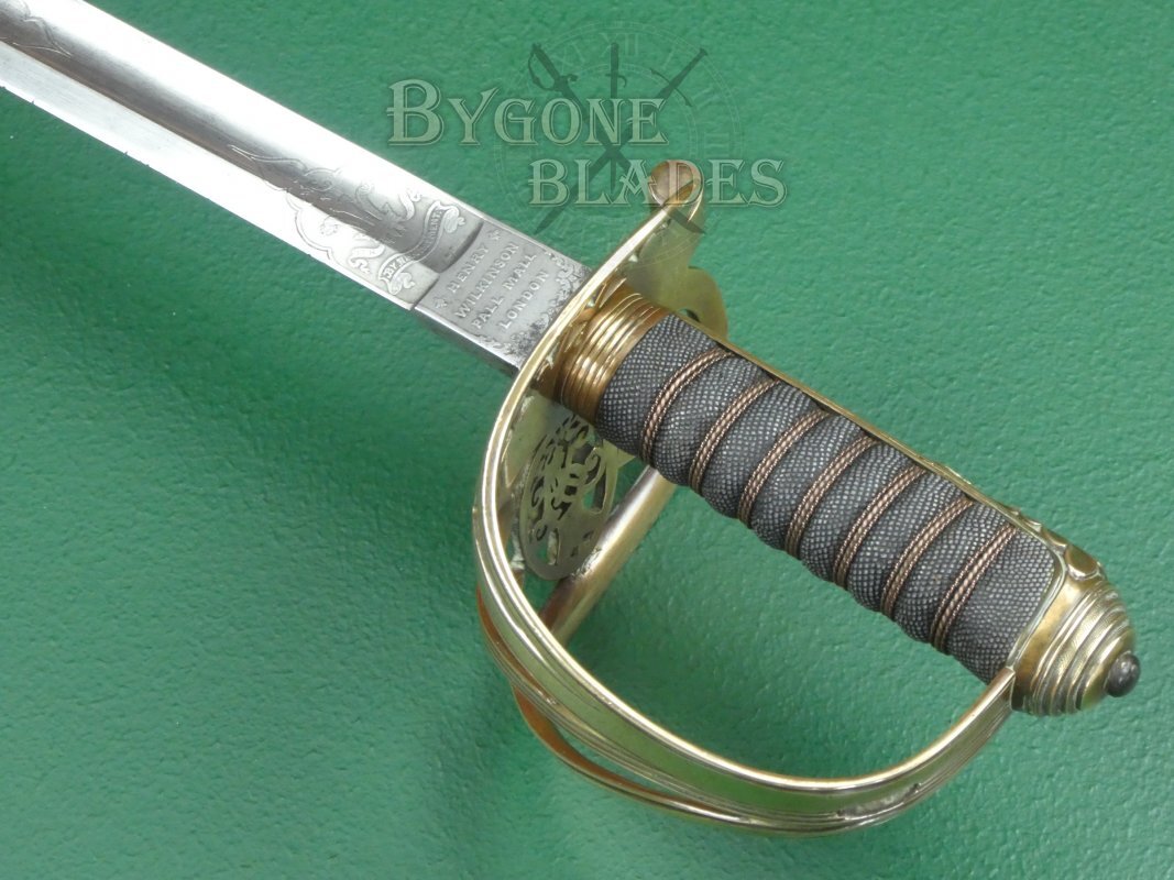 This is an excellent example of a Victorian 1854 pattern infantry officer’s sword made by Henry Wilkinson in 1889. The sword bears the owners initials and the Wilkinson serial number, facilitating research into the owner and his military career.