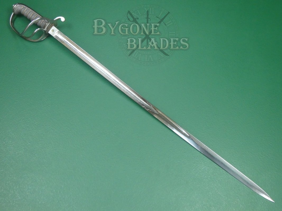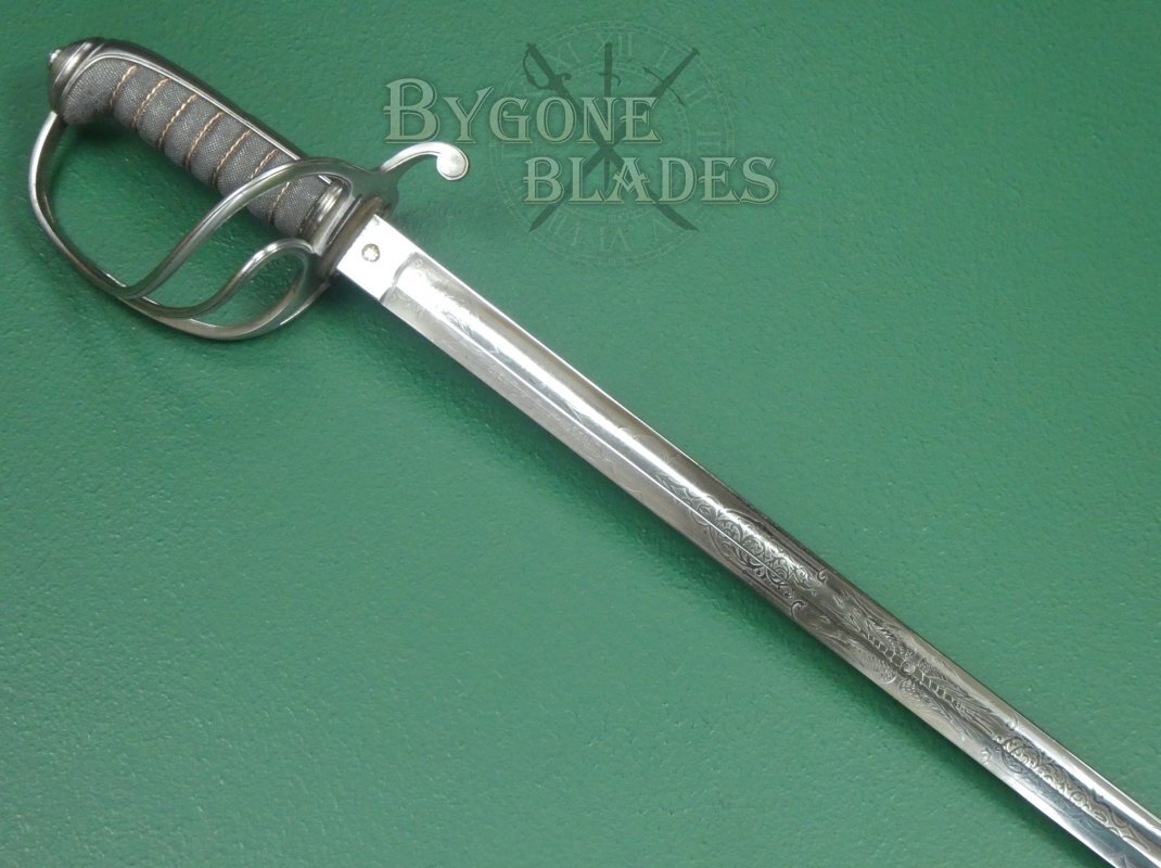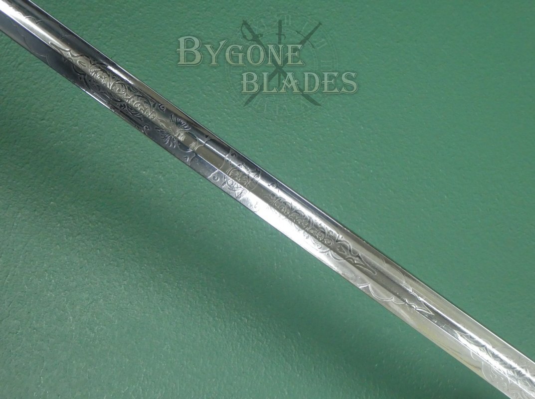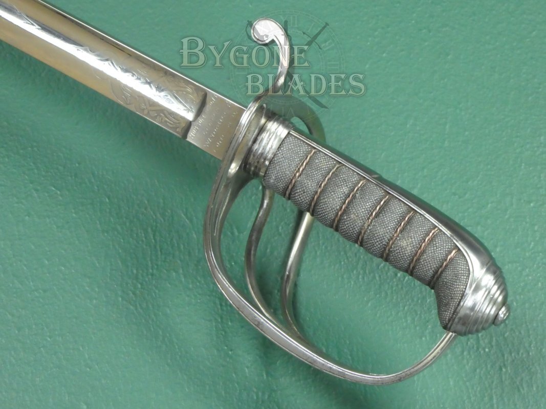 This is an excellent example of a Victorian Volunteer Artillery officer’s sword, by a top English maker and named to an officer of the prestigious Percy Volunteer Artillery.