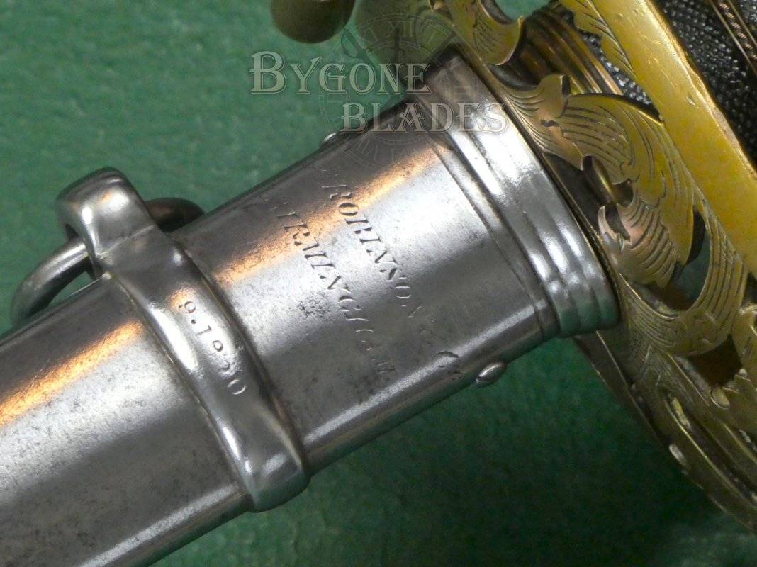 This excellent sword was made in August 1890 by George Robinson & Co. of Birmingham, England.