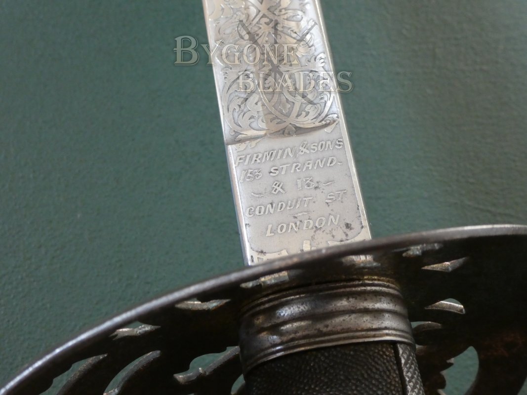 A rare and much sought after Victorian 1857 pattern Royal Engineers sword. Made by Firmin & Sons between 1857 and 1860. The P1857 was carried exclusively by officers of the Royal Engineers and was in use for only a short period before the Engineers were required to adopt the standard infantry pattern sword in 1895.