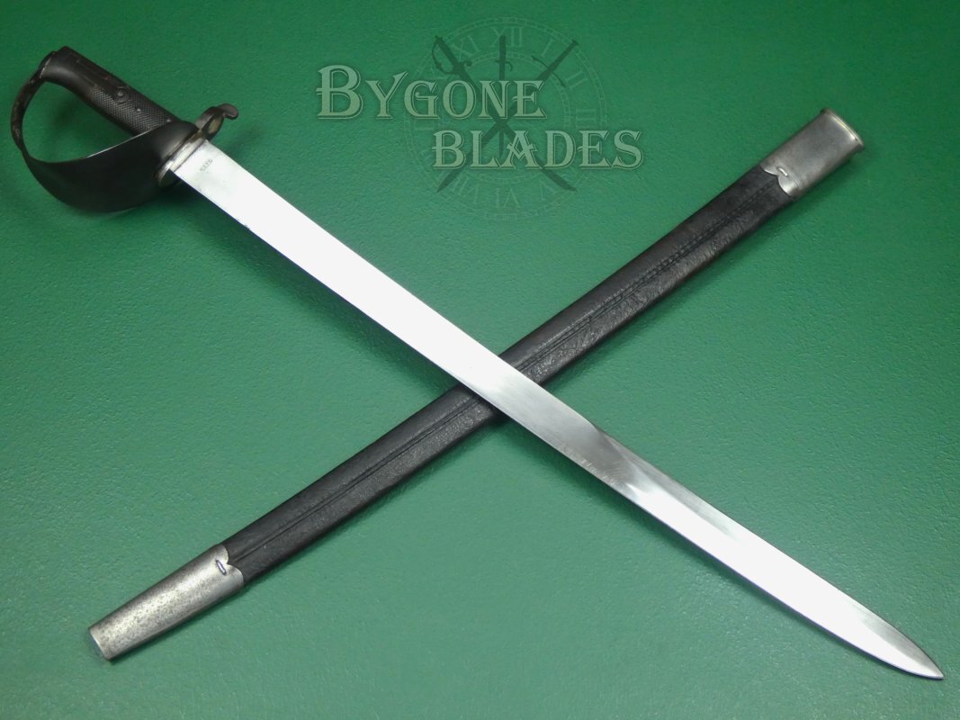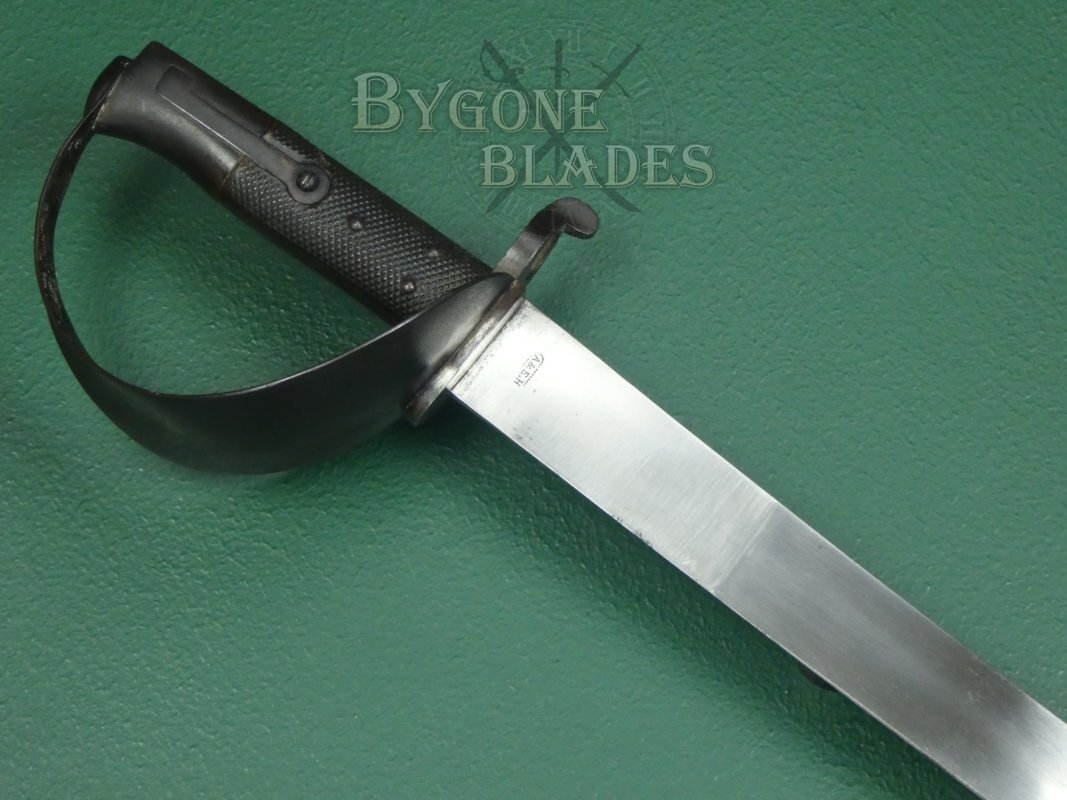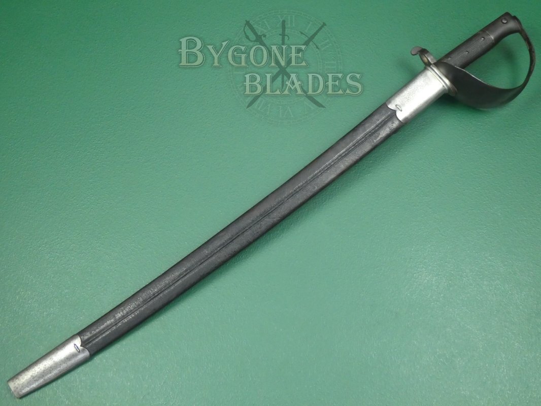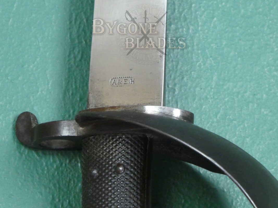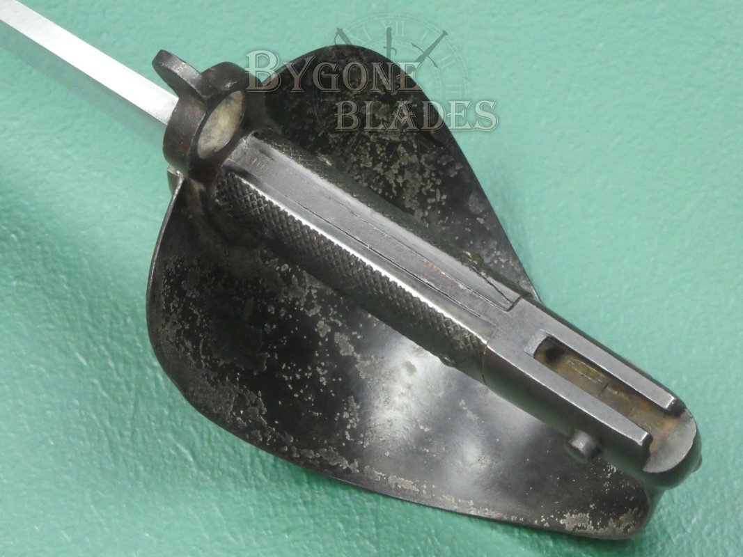 This is an excellent example of a rare British Pattern 1859 Type II naval cutlass bayonet by a scarce maker.