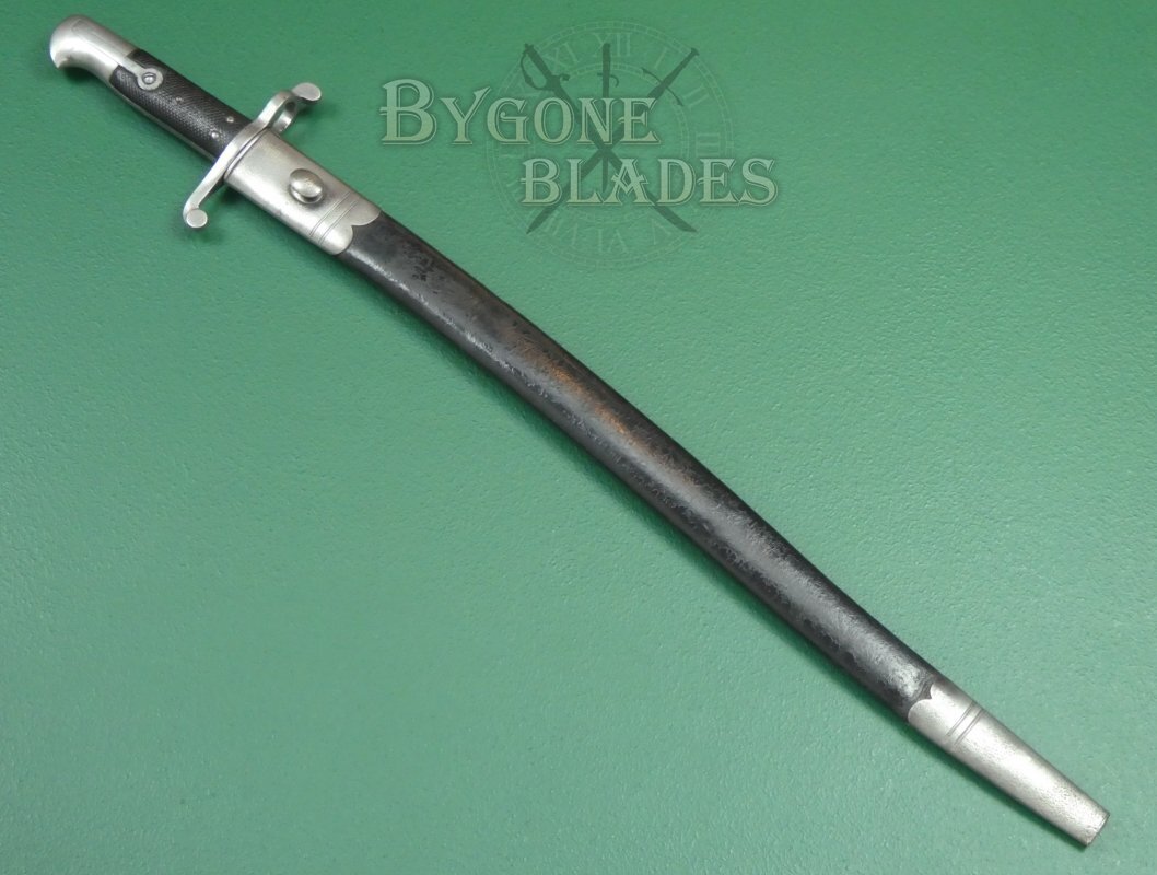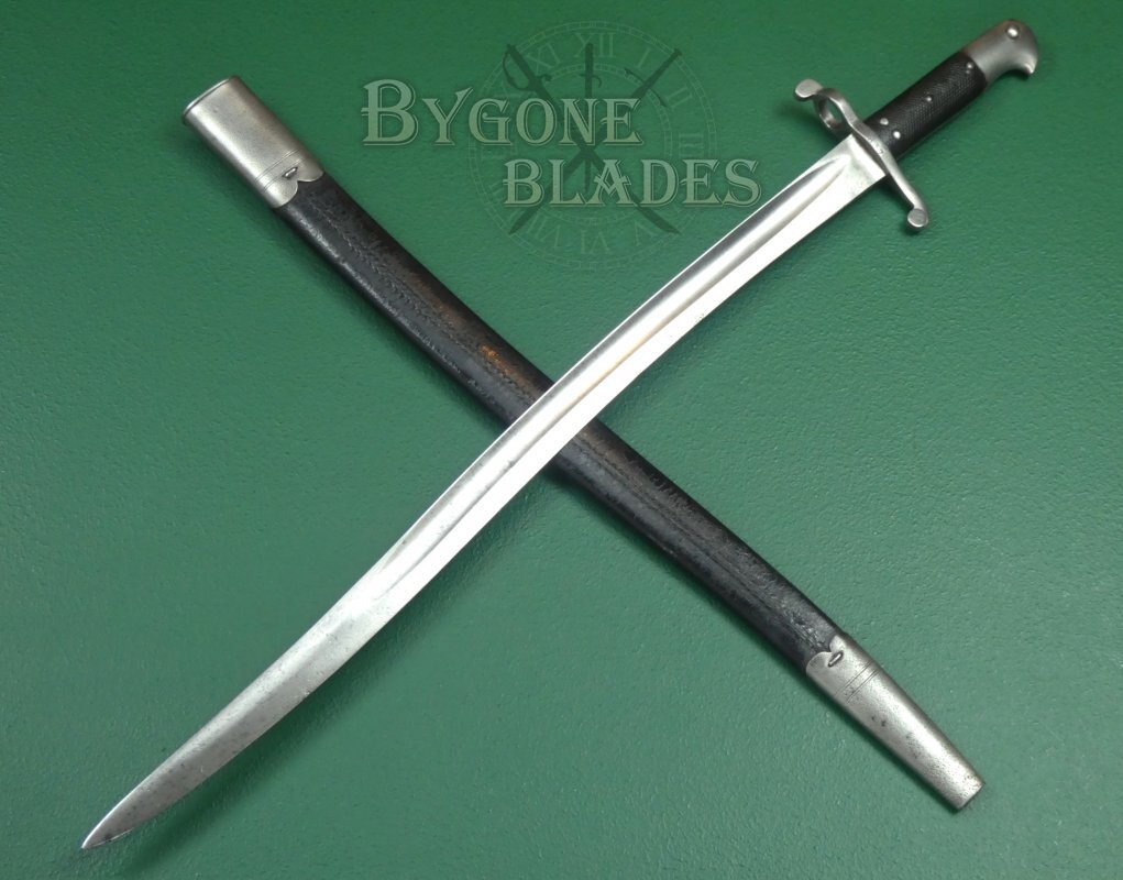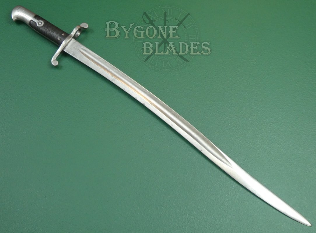 A rare yataghan sword bayonet for the 1863 Whitworth rifled musket. Only 8,200 Whitworth rifles were made. 1,000 of these rifles were sold to the Confederate forces during the American Civil War.