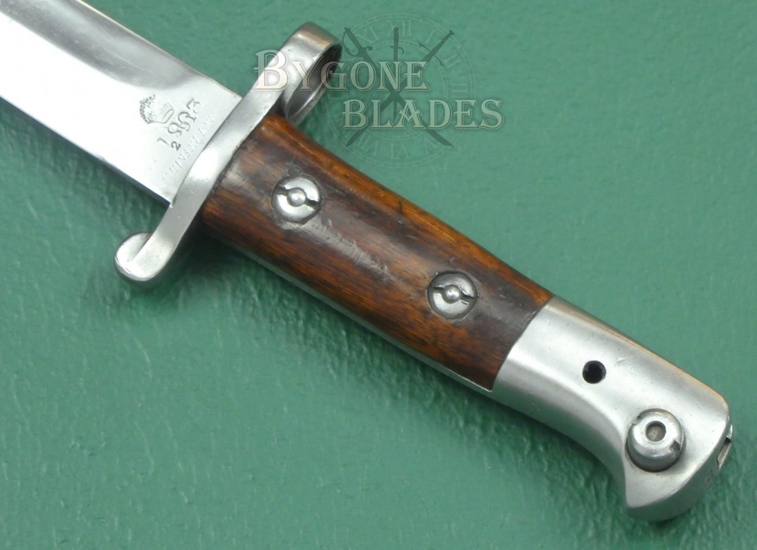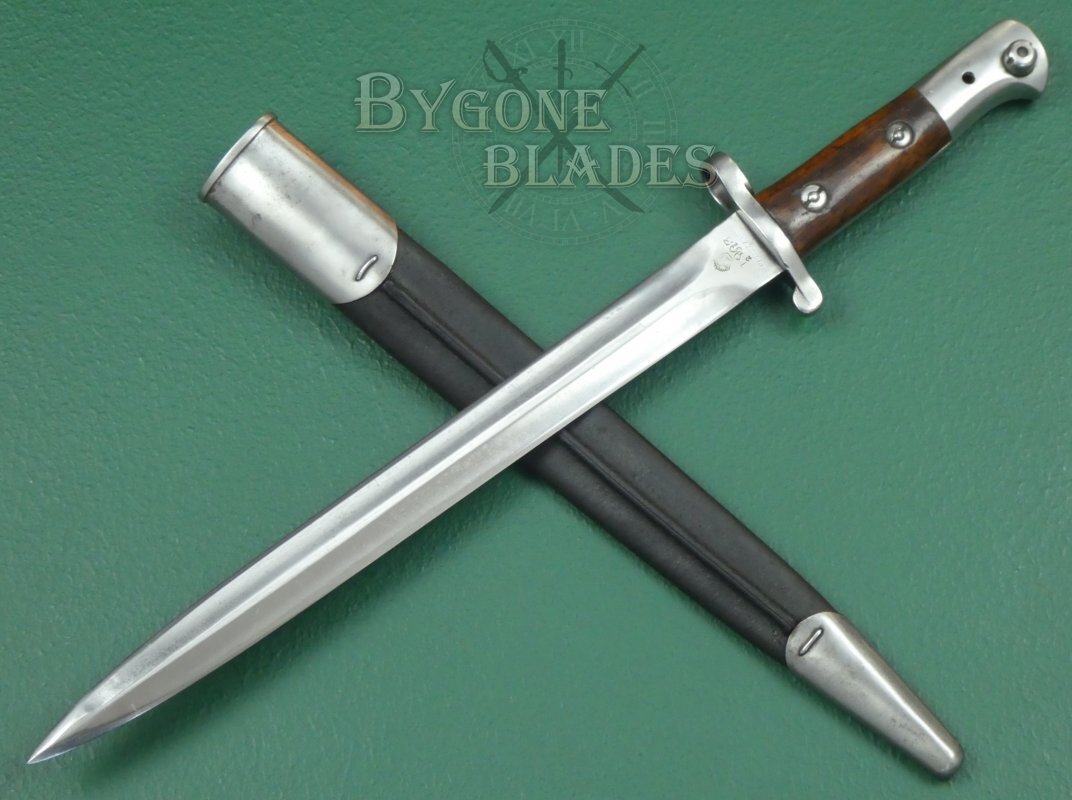The P1903 had a short service life as the blade wasn’t thought to be long enough, having less reach than most European bayonets when combined with the shorter Mk1 rifle. The P1903 was produced for British use from 1903–1907, at which time the P1907 was adopted.