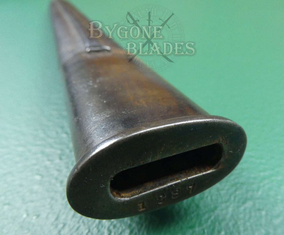 This is a rare bayonet. Rarer still is the matching numbered and dated Mk I internal chape leather scabbard.