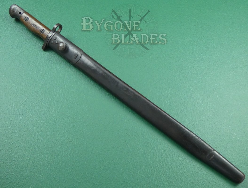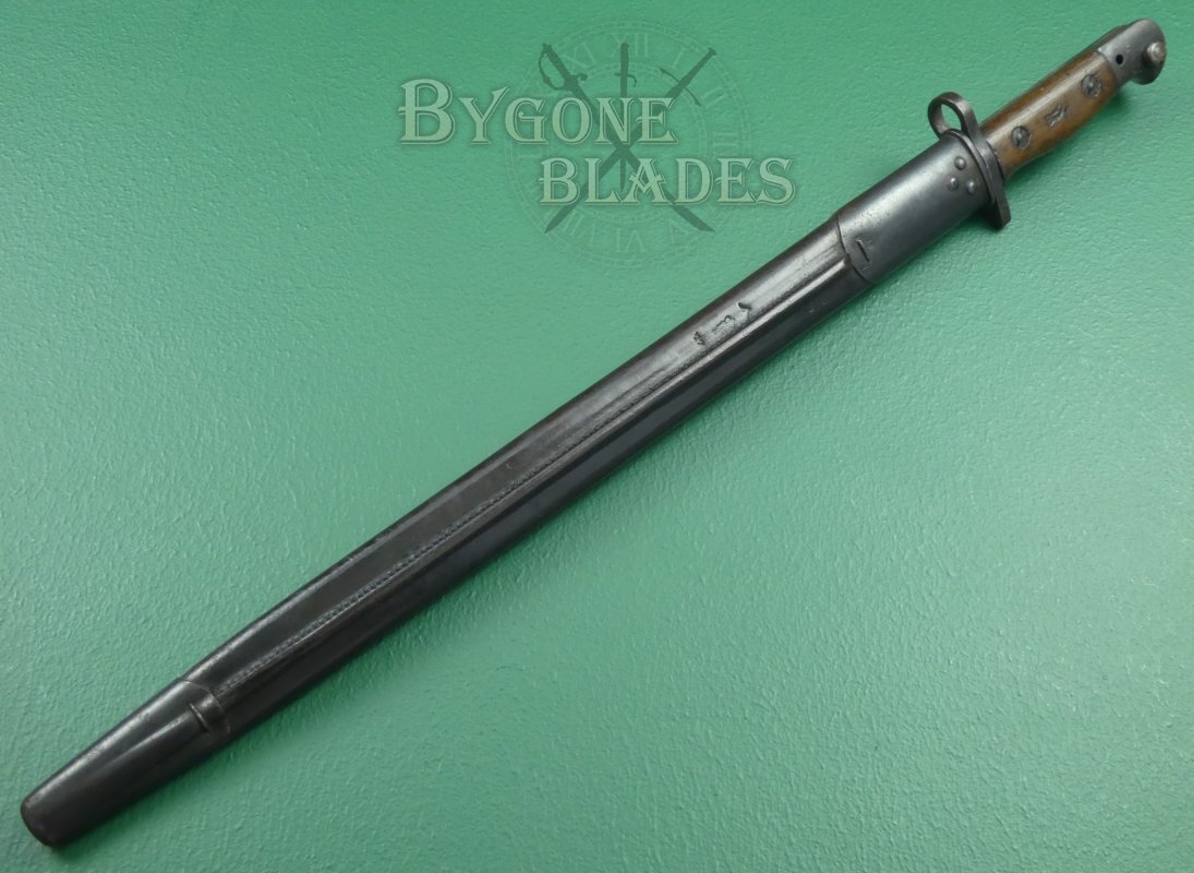 This is a very good example of the iconic British World War One Enfield rifle bayonet, made by the Wilkinson Sword Company and issued to the famous “London Scottish” who fought bravely throughout WW1.